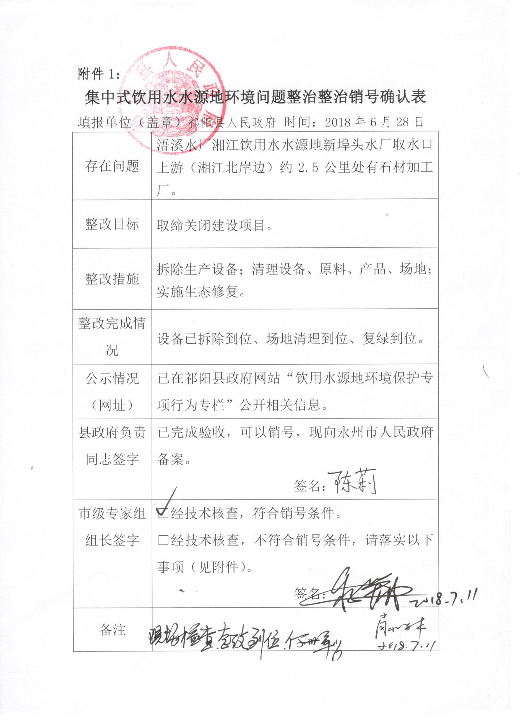 新埠头水厂约2.5公里处石材加工场销号确认单