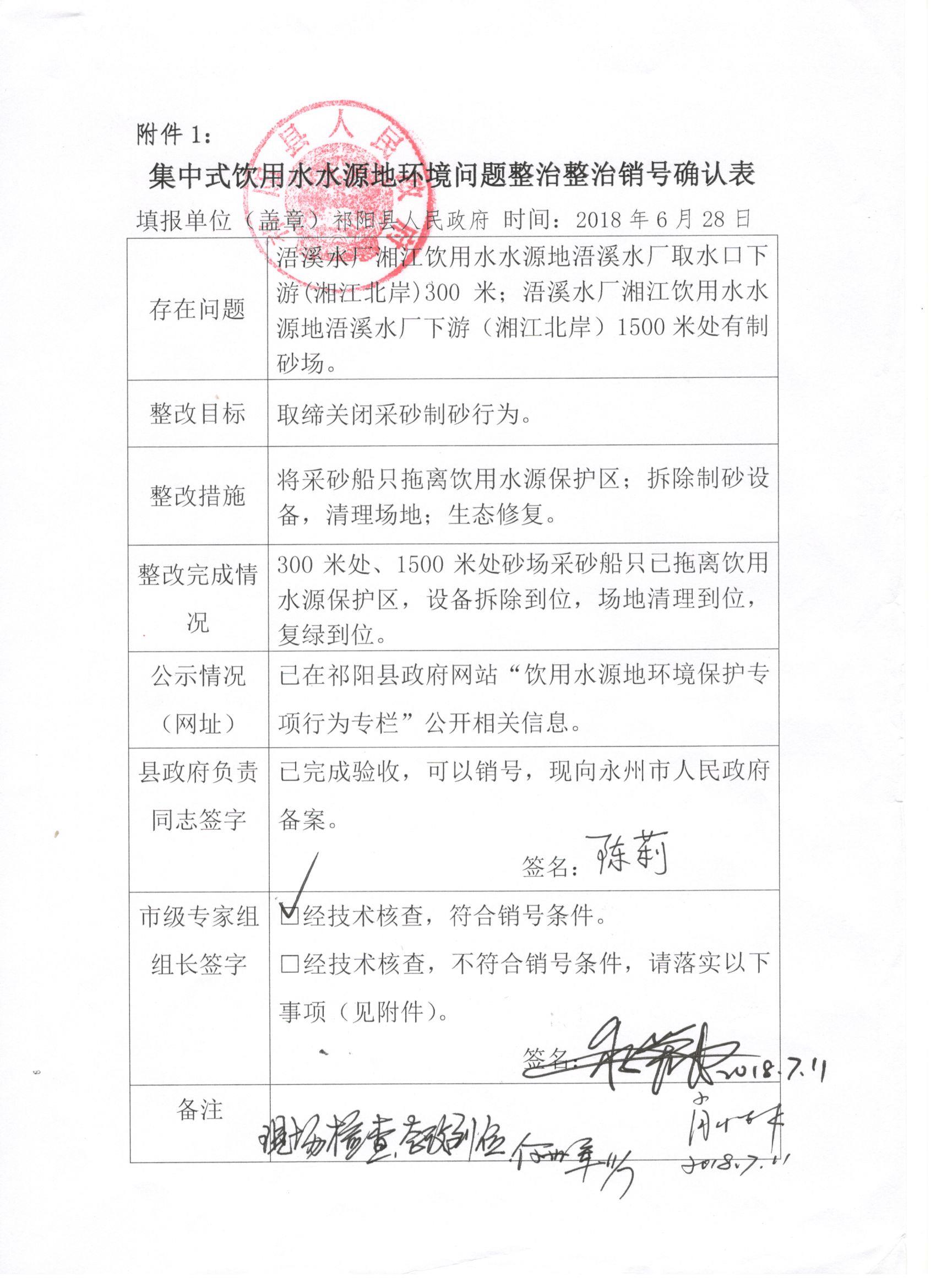 浯溪水厂上下游1500米、300米处制砂场销号确认单