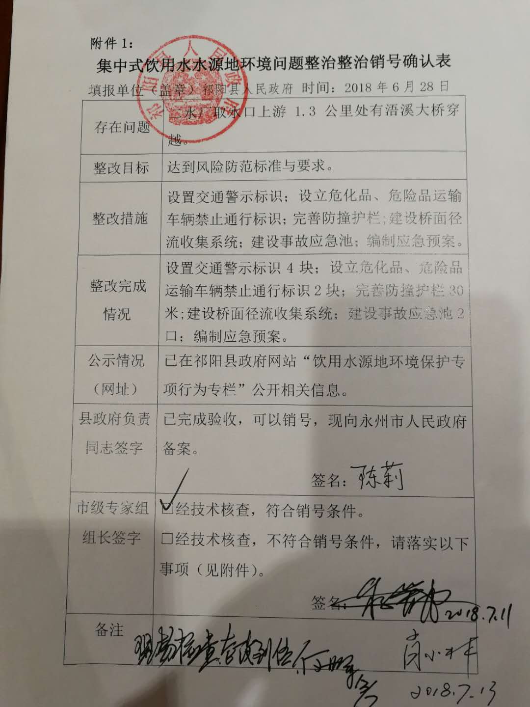 二水厂上游1.3公里处浯溪大桥穿越风险防范销号确认单