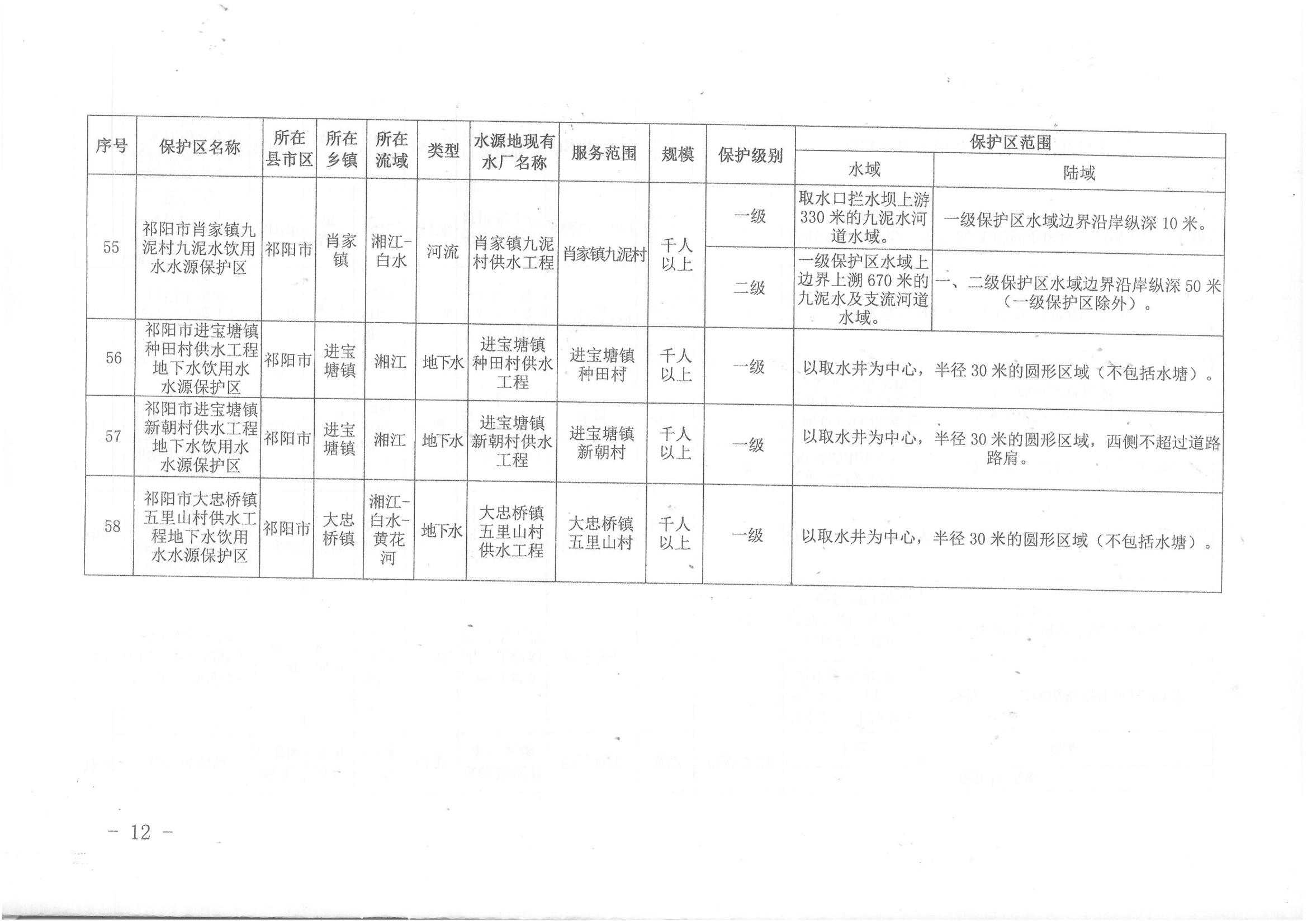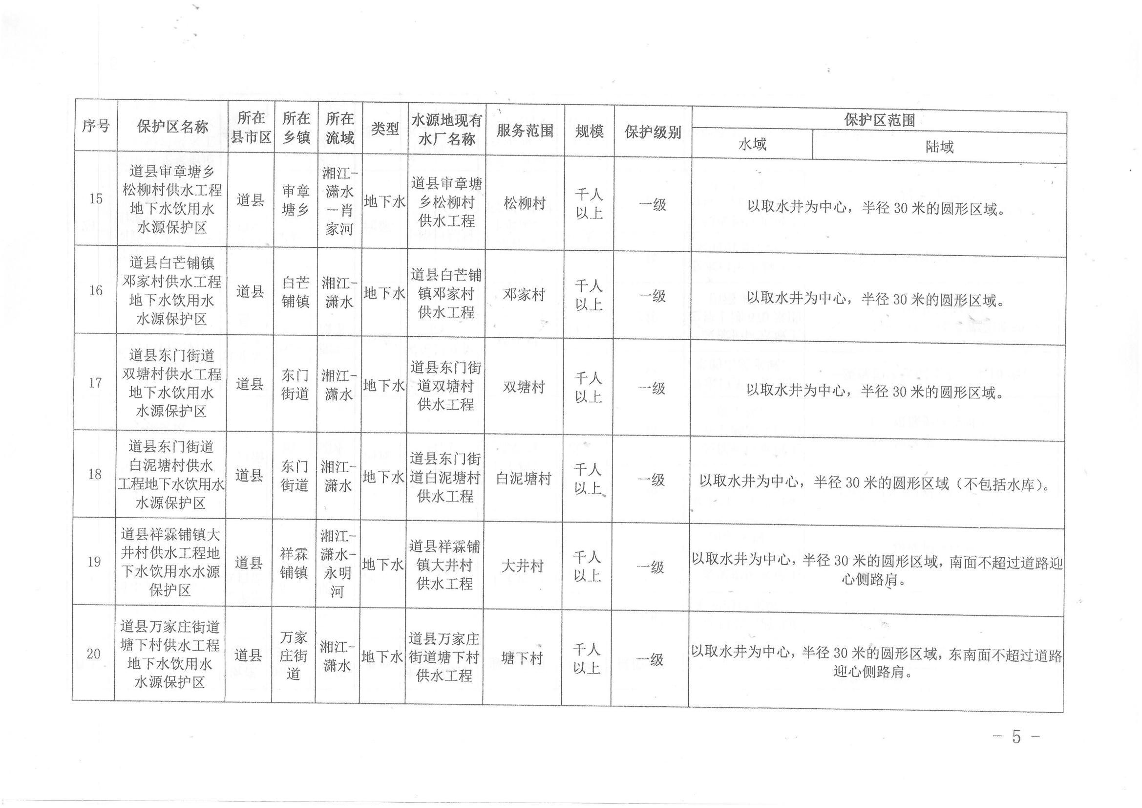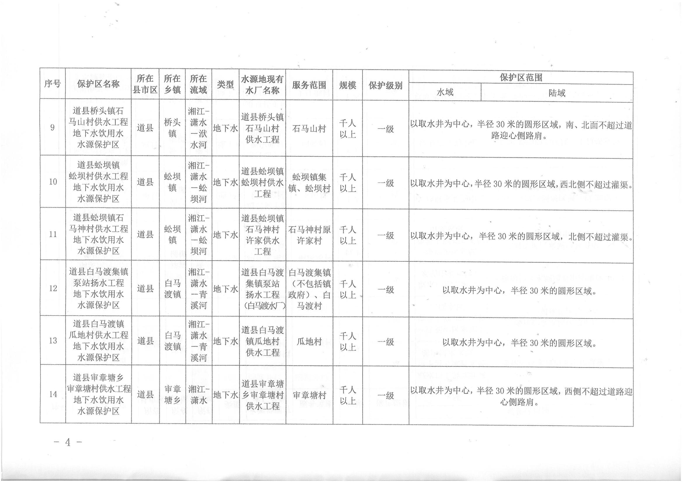 永州市人民政府 关于公布永州市第二批乡镇级以下千人以上集中式饮用水水源保护区划定方案的通知