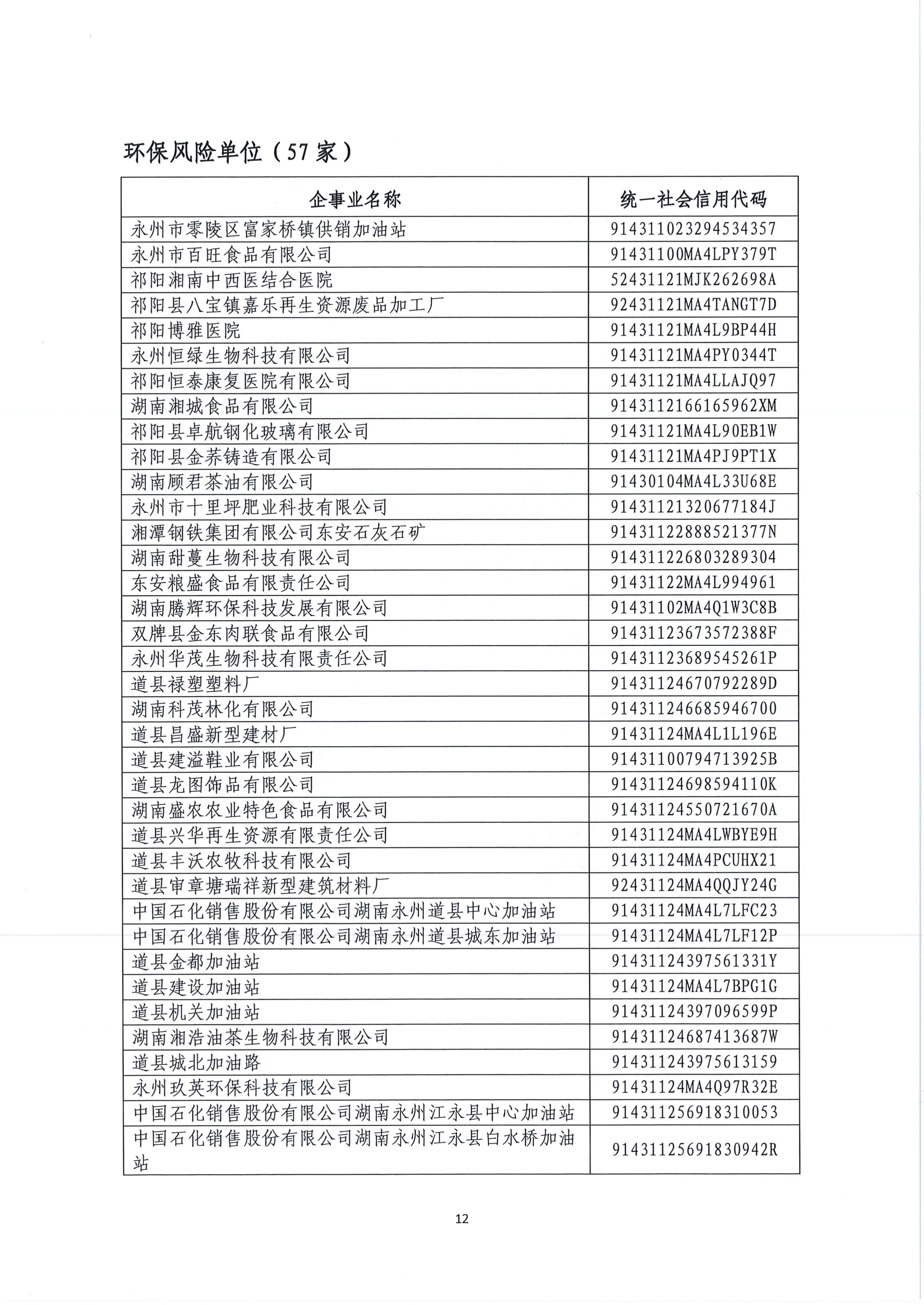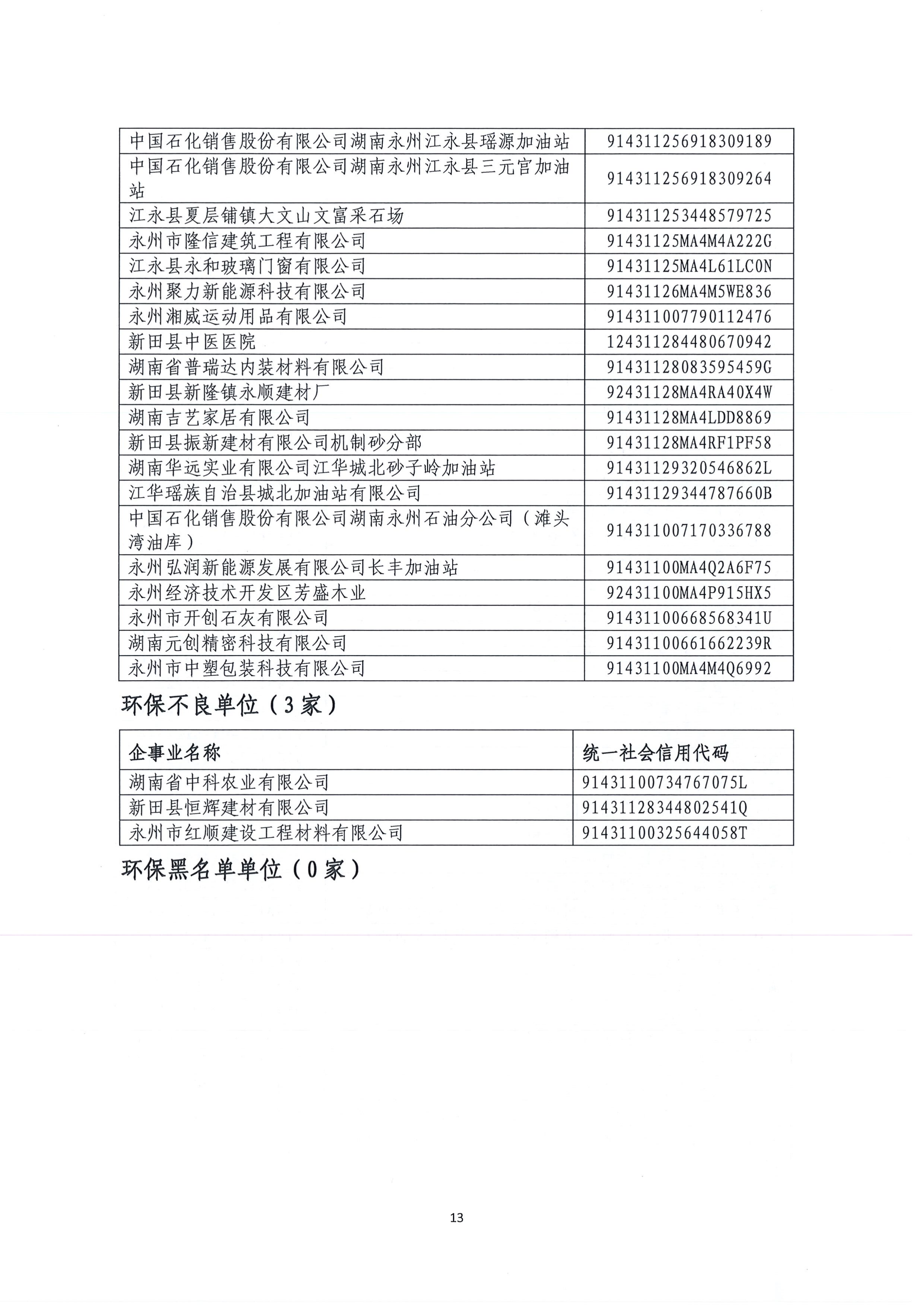 永州市生态环境局关于发布永州市2021年度市级参评企事业单位环保信用评价结果的通知