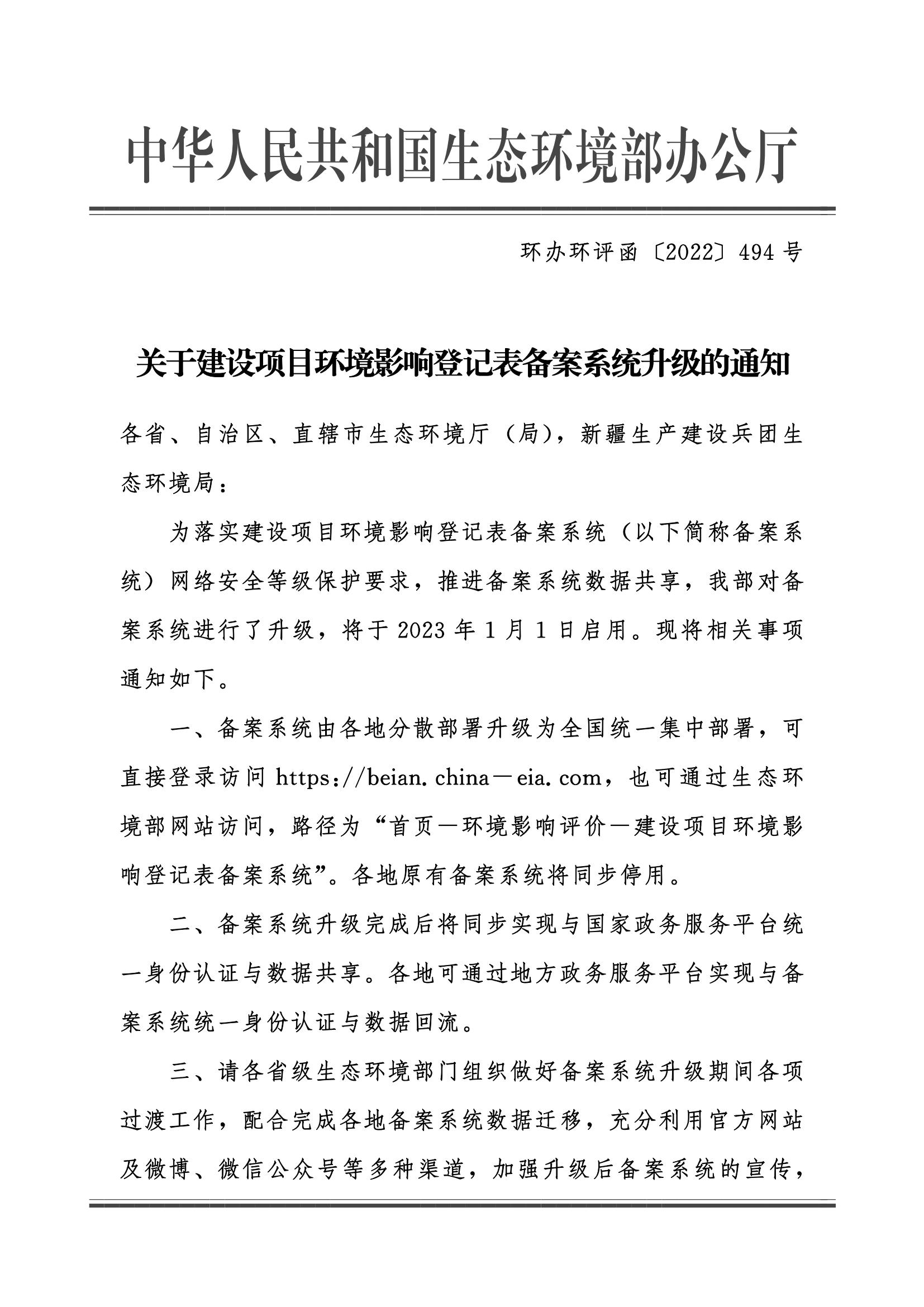 关于建设项目环境影响登记表备案系统升级的通知