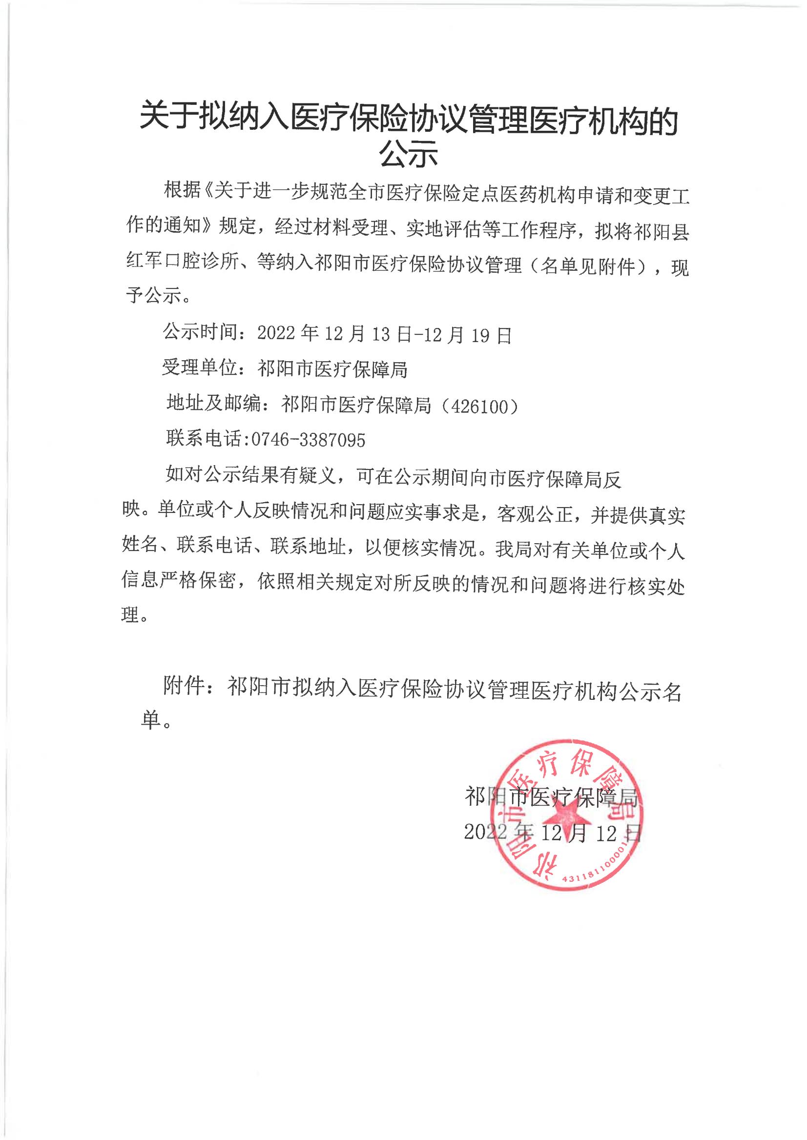 关于拟纳入医疗保险协议管理医疗机构的公示