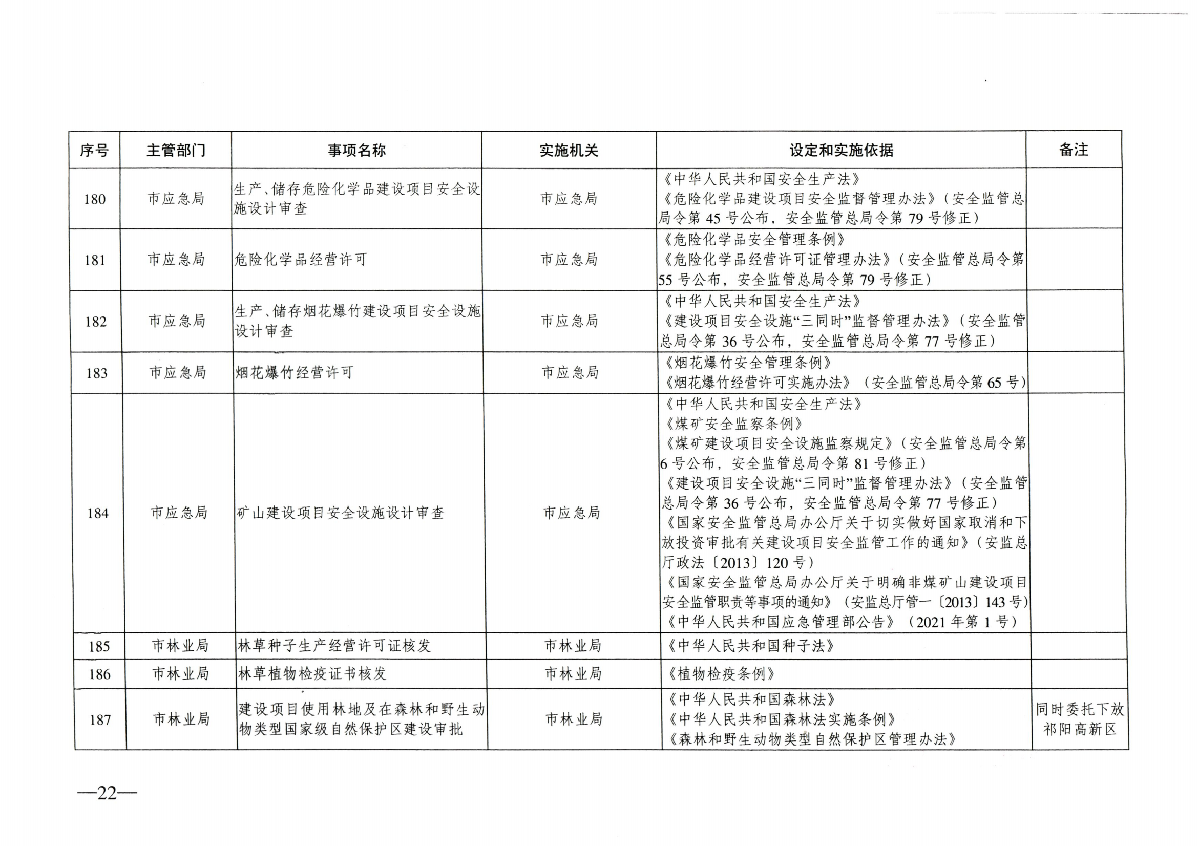 祁阳市人民政府办公室关于印发《祁阳市行政许可事项清单(2023年版)》的通知