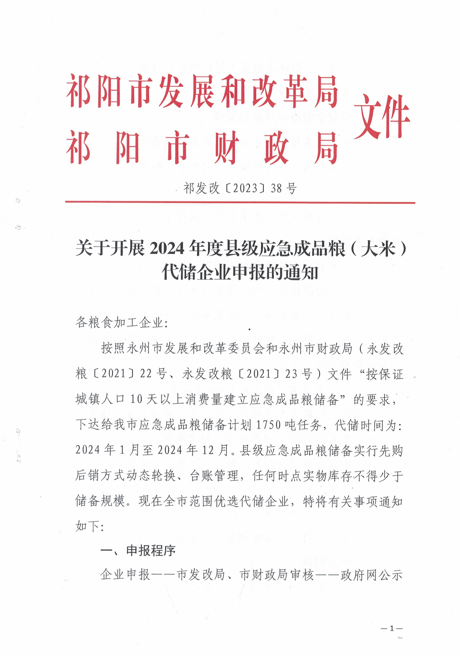 关于开展2024年度县级应急成品粮(大米)代储企业申报的通知