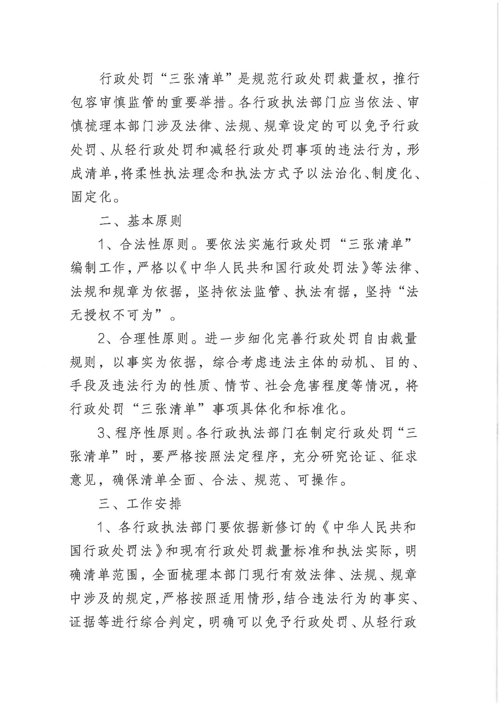 关于建立免予行政处罚、从轻行政处罚、减轻行政处罚“三张清单”工作的通知