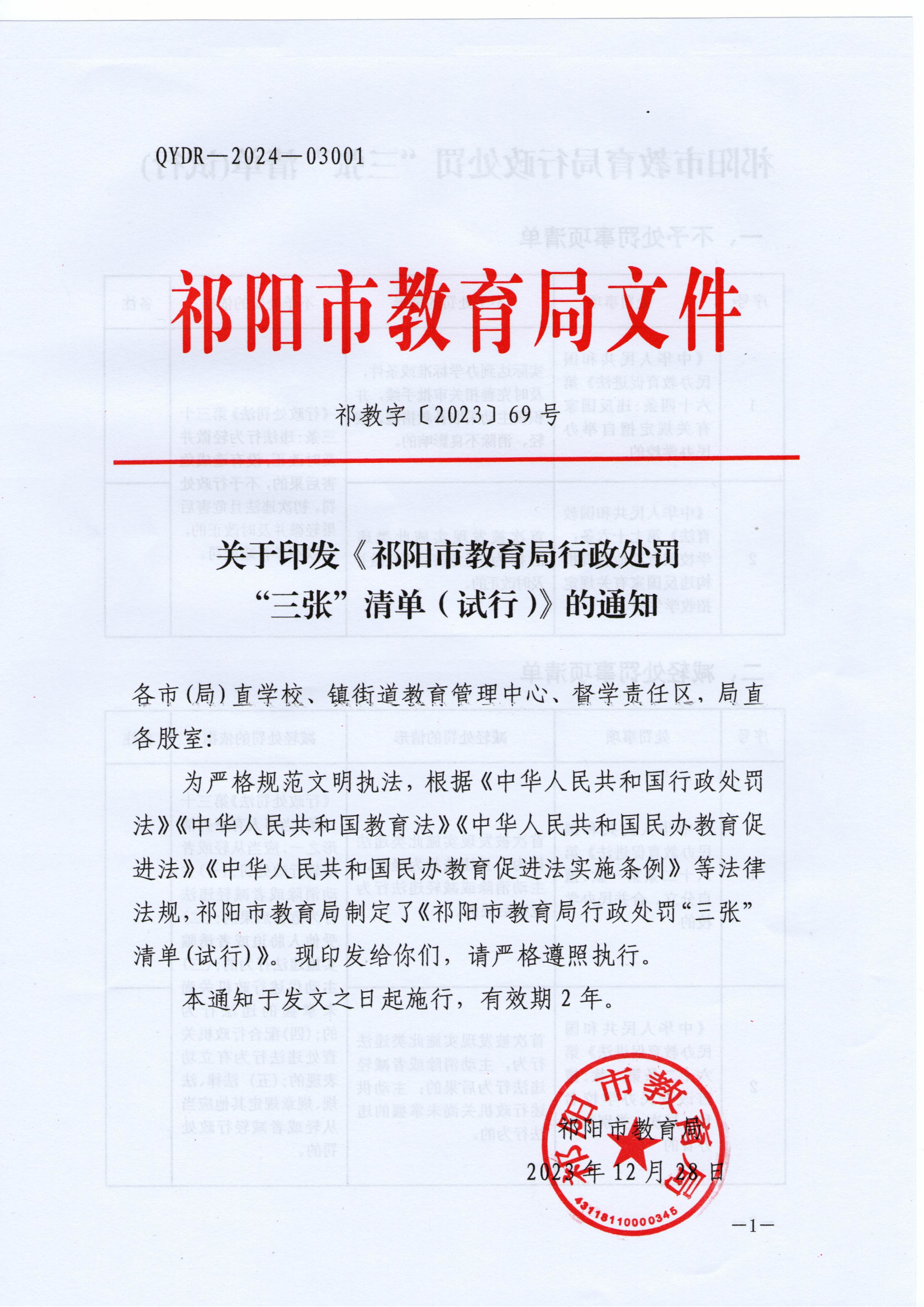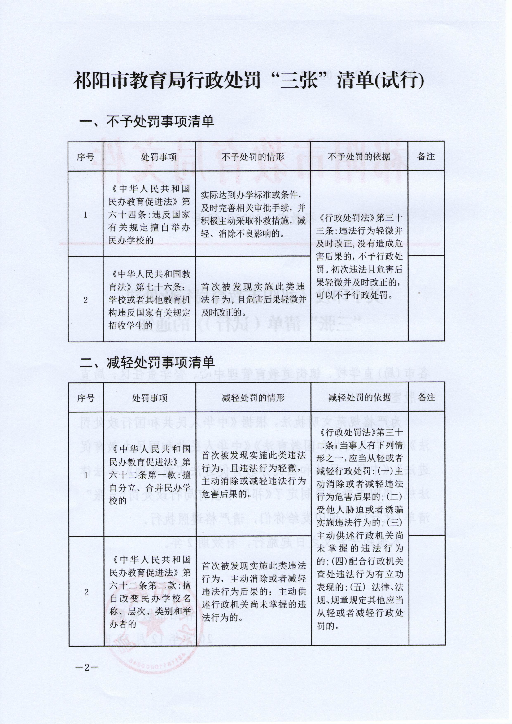 关于印发《祁阳市教育局行政处罚“三张”清单(试行)》的通知