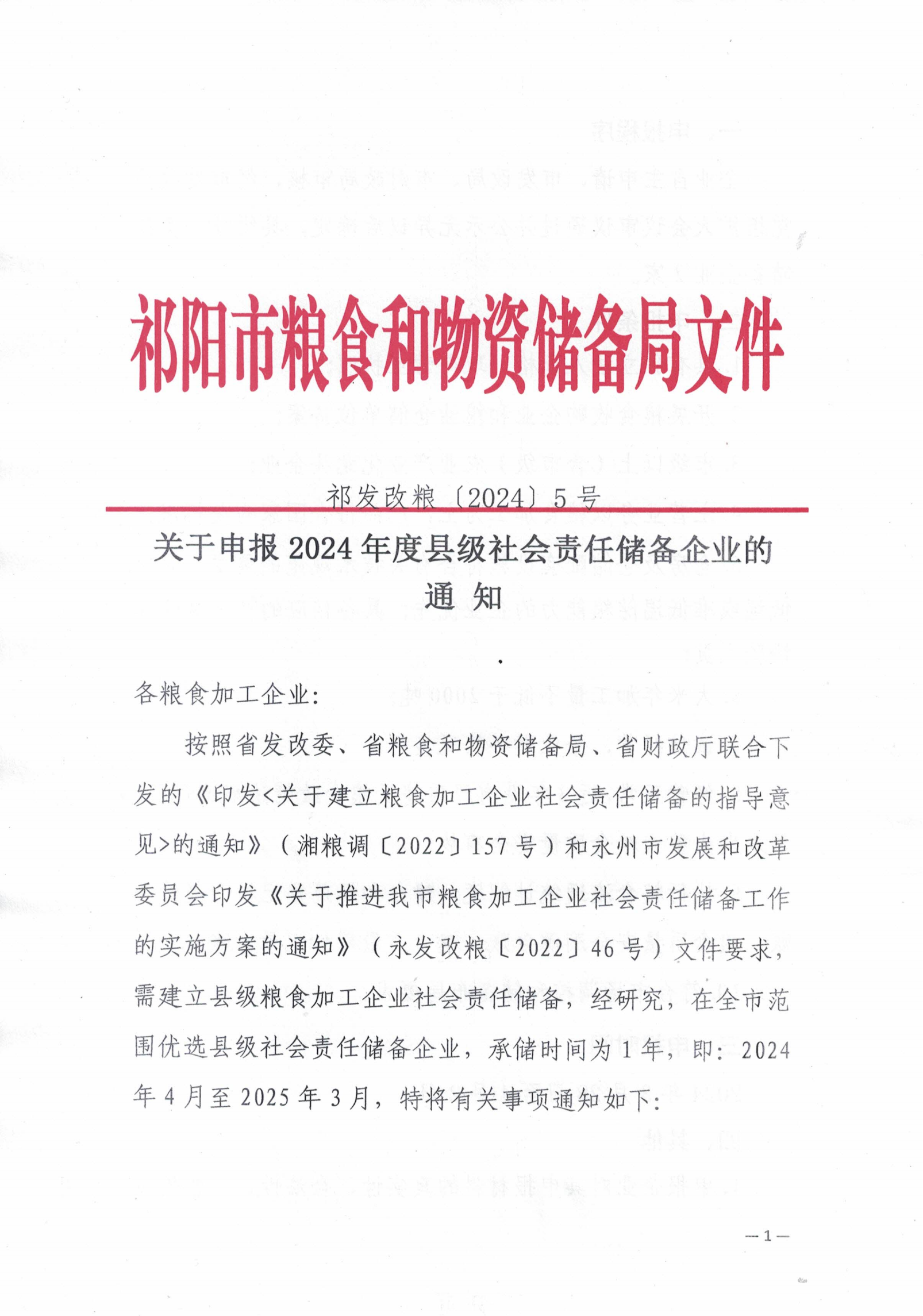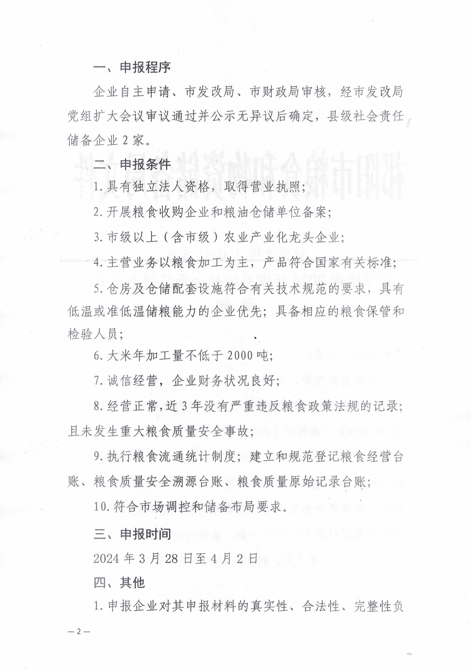 关于申报2024年度县级社会责任储备企业的通知