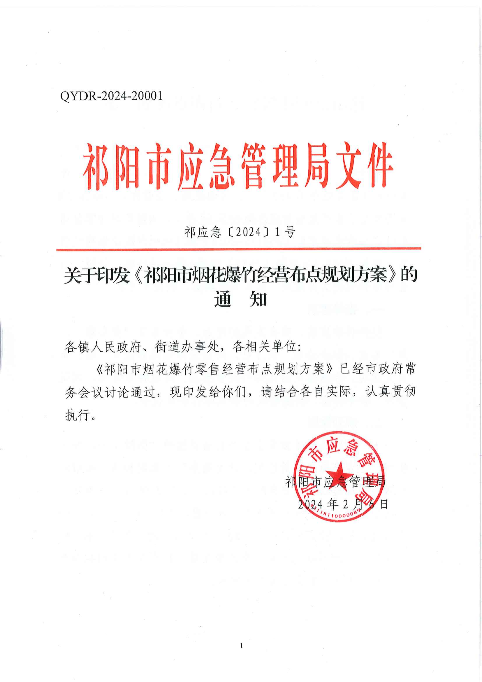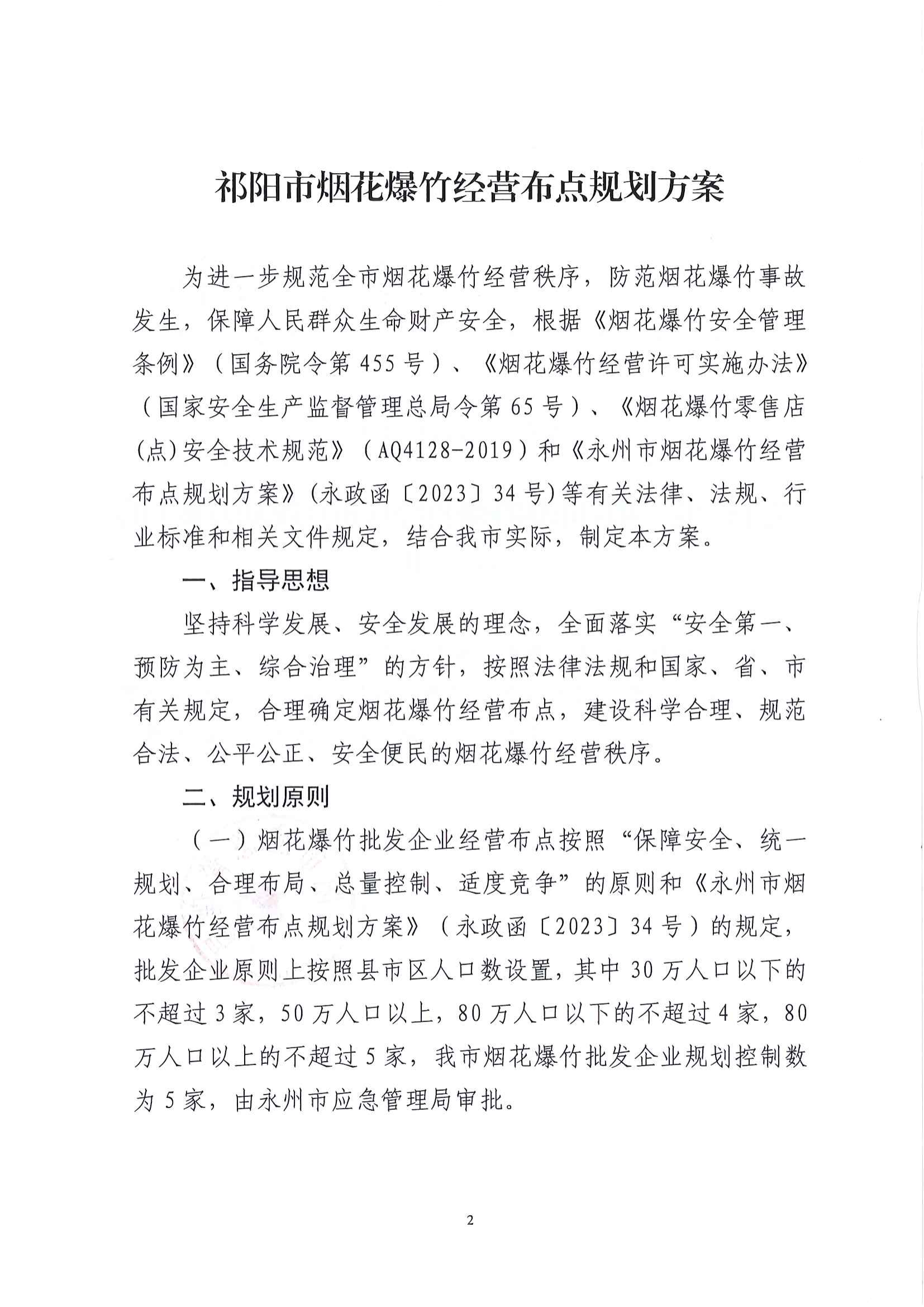 关于印发《祁阳市烟花爆竹经营布点规划方案》的通知