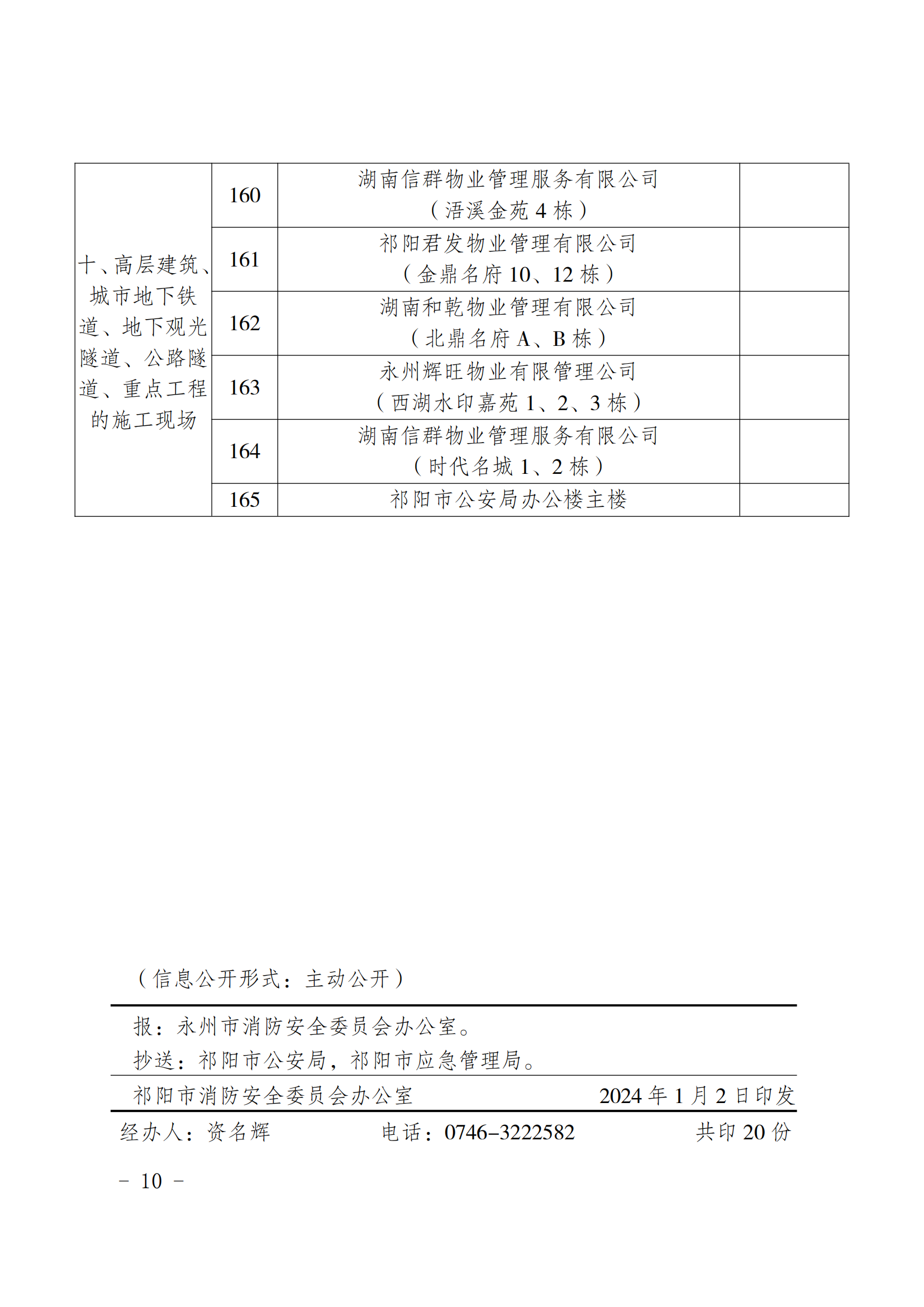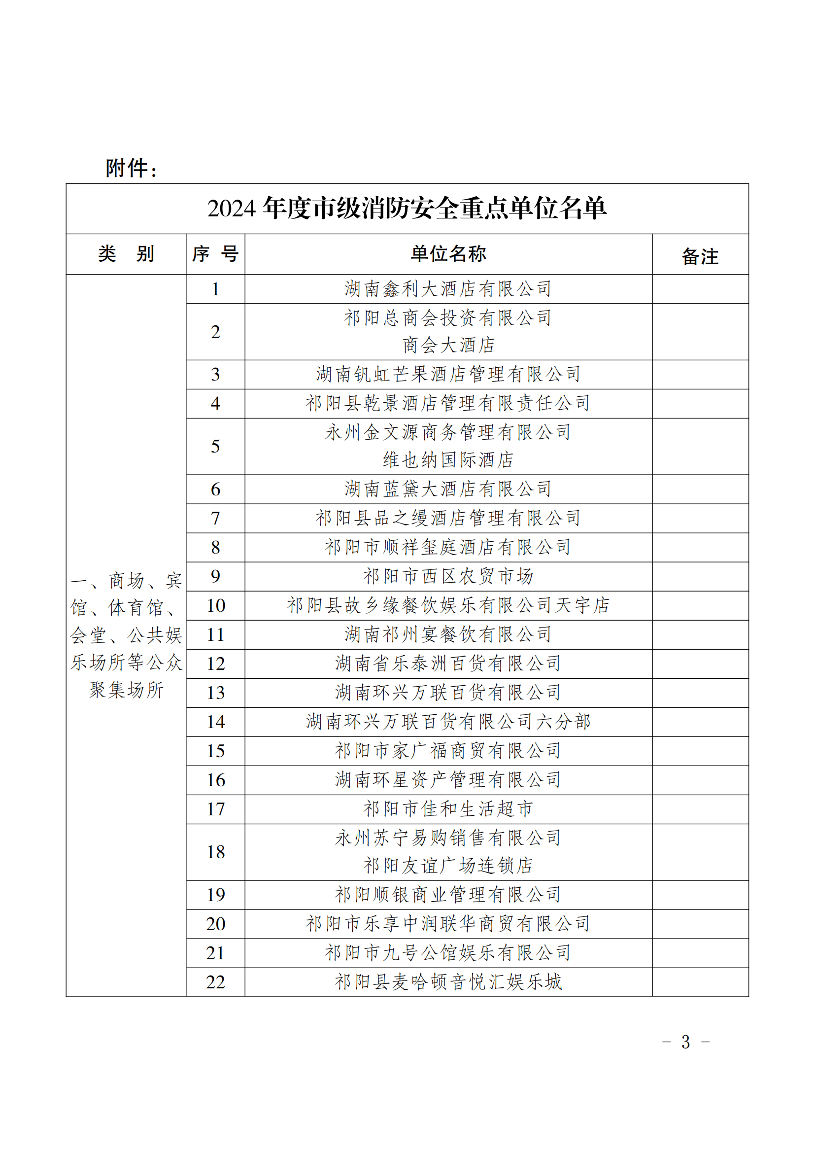 祁阳市消防安全委员会办公室关于调整市直消防安全重点单位的通知
