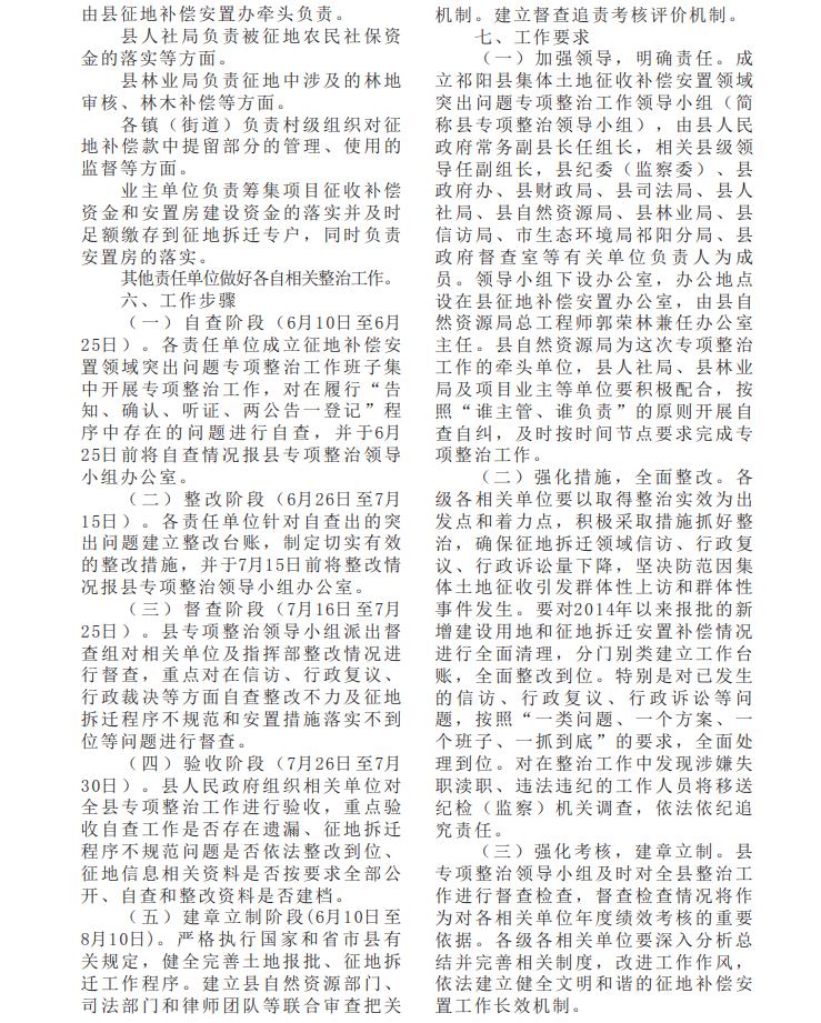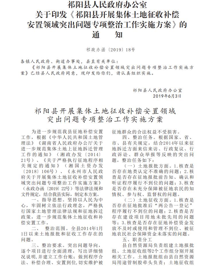 政策文件解读关联:《祁阳县开展集体土地征收补偿安置领域突出问题专项整治工作实施方案》的解读