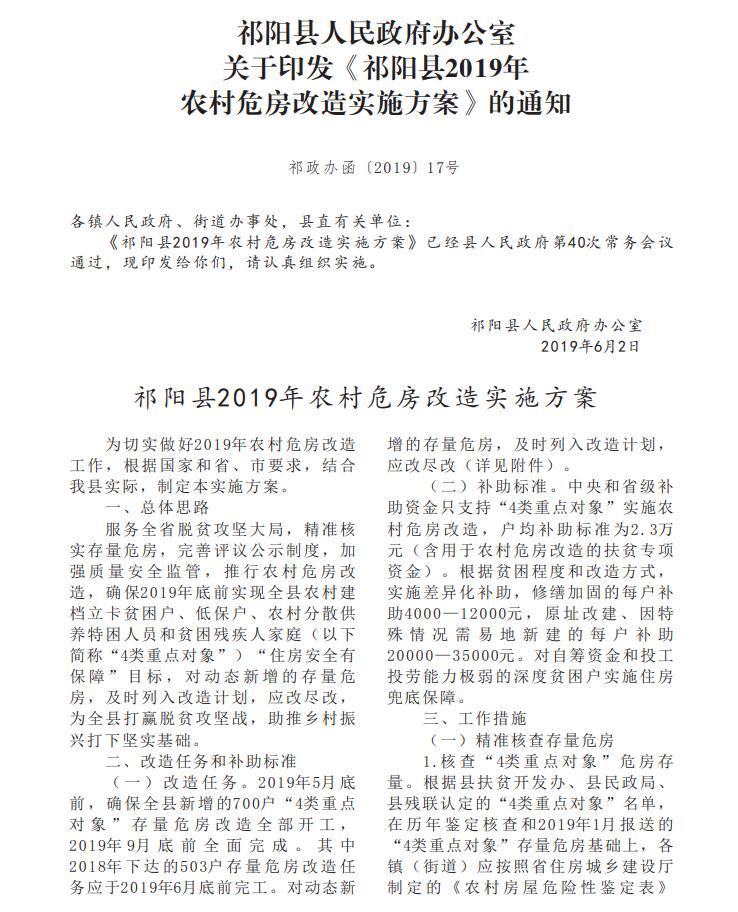 《祁阳县2019年农村危房改造实施方案》的解读