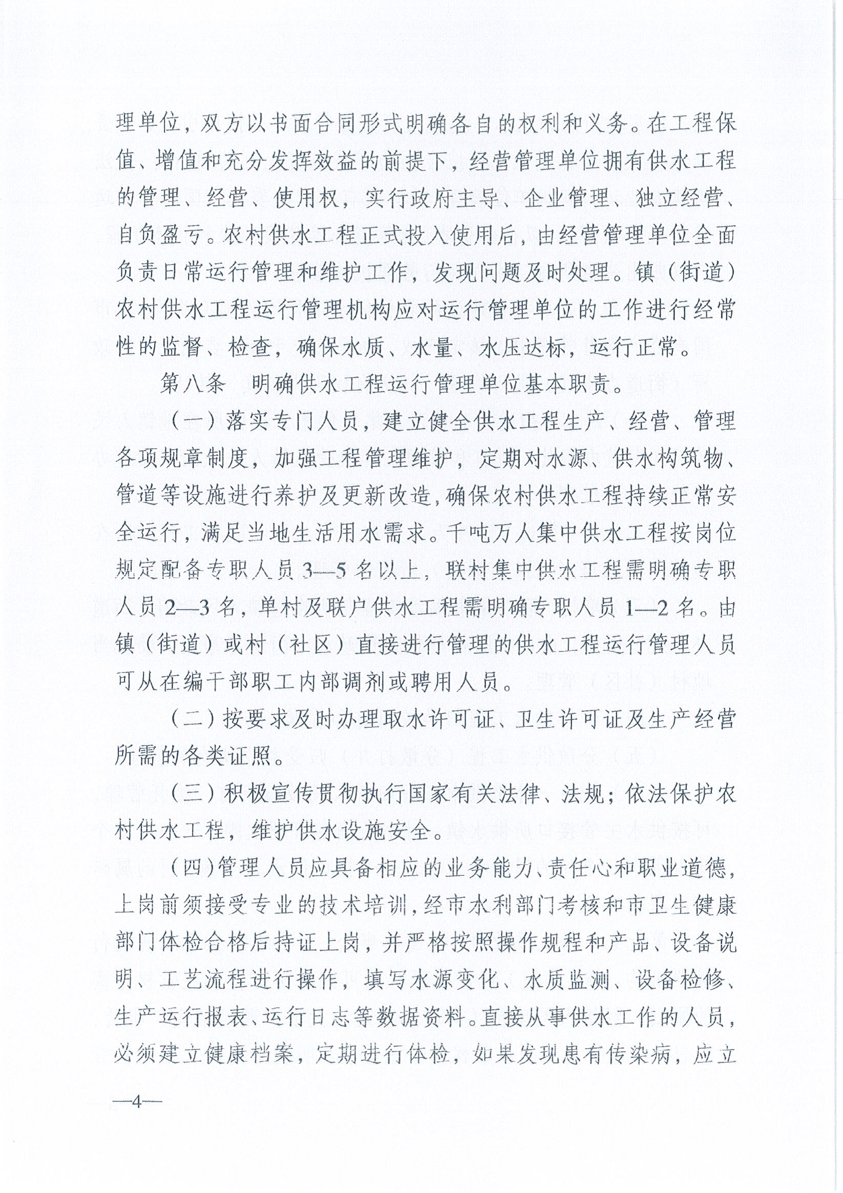 | 公开方式: | 主动公开 | 公开范围: | 面向社会 | 主题词: | 农村供水工程运行管理办法 |