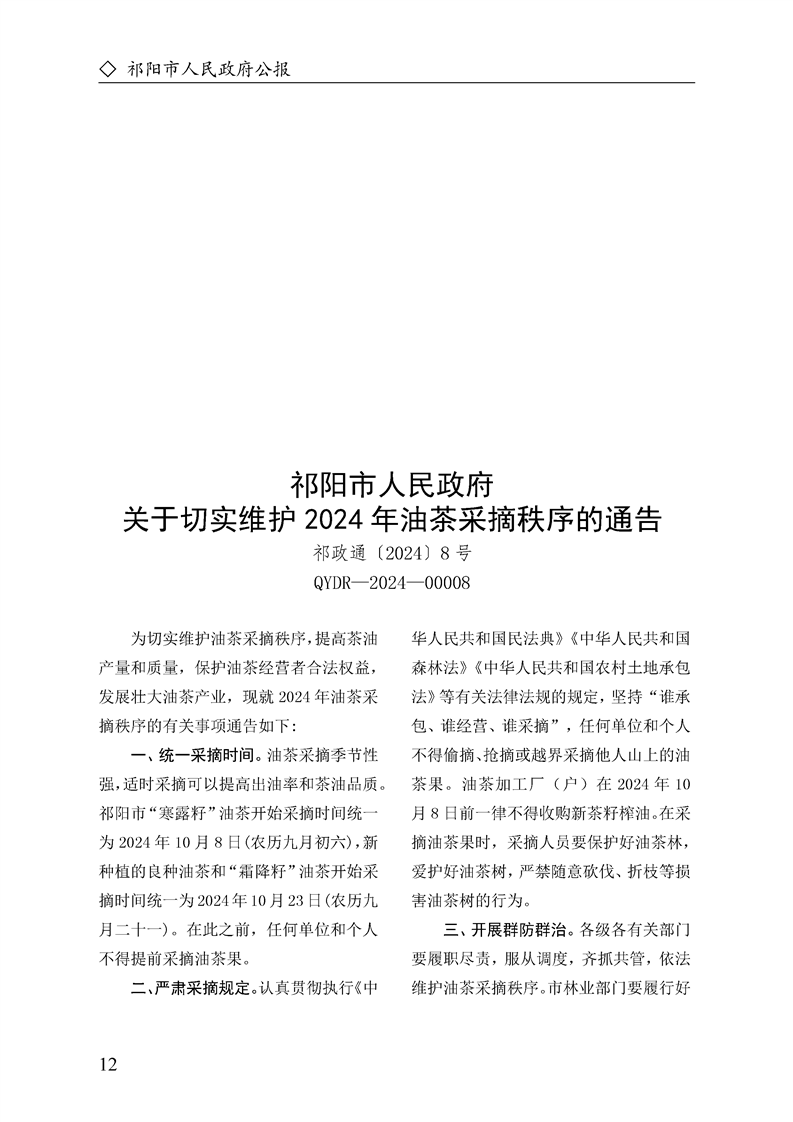 | 统一登记号: | QYDR-2024-00008 | 信息时效性: | 有效 | 文号 : | 祁政通[2024]8号 |