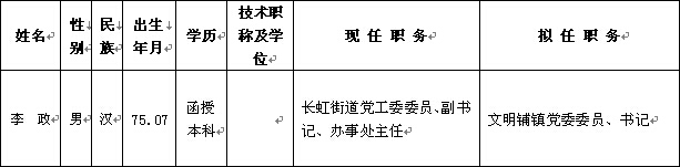 为了加强对干部选拔工作的监督,提高识别和任用干部的准确程度,现对县委常委会议研究决定的下列1名拟任职人选进行公示: