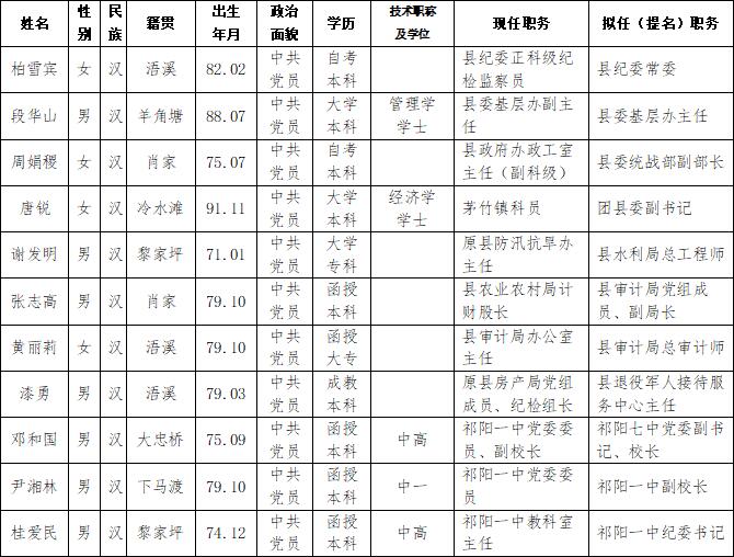 为加强对干部选拔工作的监督,提高识别和任用干部的准确程度,现对县委常委会议研究决定的下列11名拟任(提名)人选进行任前公示: