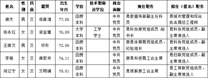 为加强对干部选拔工作的监督,提高识别和任用干部的准确程度,现对县委常委会议研究决定的下列5名拟任(提名)人选进行任前公示: