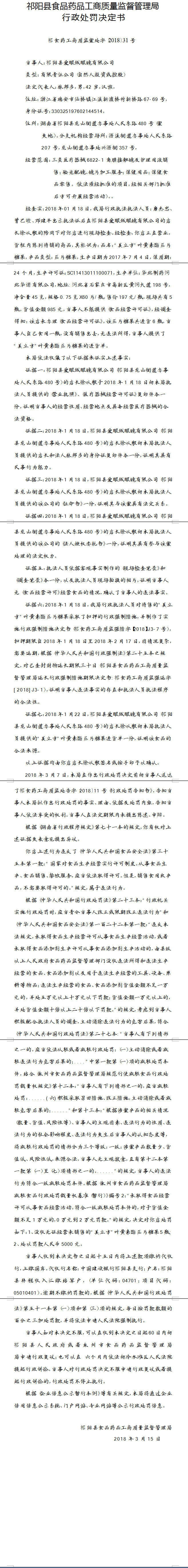 (行政处罚决定书)祁食药工商质监案处字〔2018〕31号