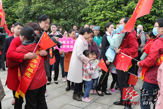 “祁阳我们回来了,好想你个(你们)!”春暖花开时节,英雄凯旋归乡。4月6日上午10时许,祁阳县驰援湖北医疗队6名队员乘坐的返乡大巴向着他们熟悉的家乡三吾大地越驶越近……为迎接医疗队的英雄们归来,英雄家属手捧鲜花翘首以盼,群众也自带相机和自制应援物早早等候在县政府广场上,期待见证这一激动人心的时刻。