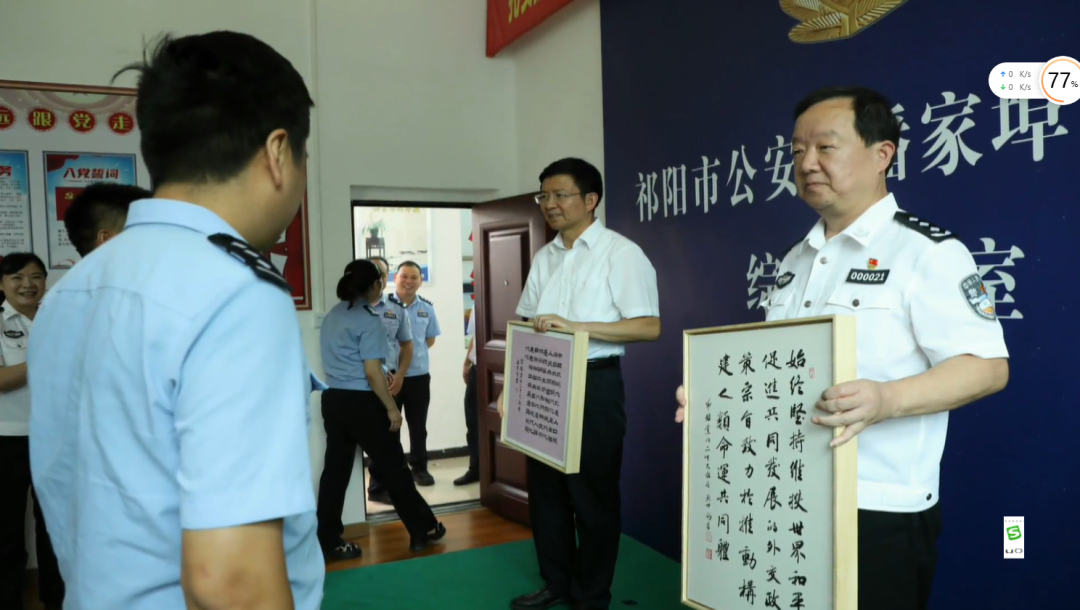7月14日上午,由湖南省公安厅主办的三湘百所送文化下基层首场活动走进祁阳市公安局潘家埠派出所。省公安厅一级警务专员罗伟,湖南省书协主席鄢福初,永州市政协副主席、祁阳市委书记蒋良铁,永州市公安局党委委员、政治部主任义盛章等领导参加活动。