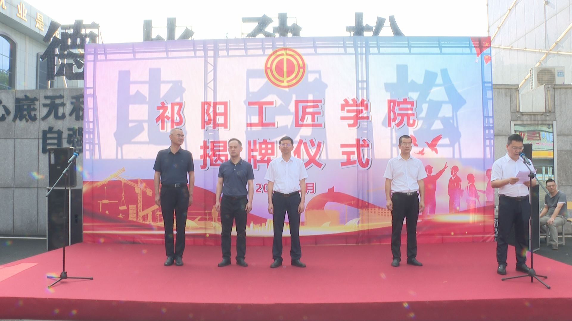随后,蒋良铁、陈海平共同为祁阳工匠学院揭牌。揭牌仪式后,全体参会人员参观了祁阳市职业中专产教融合楼和产业工人培训基地。