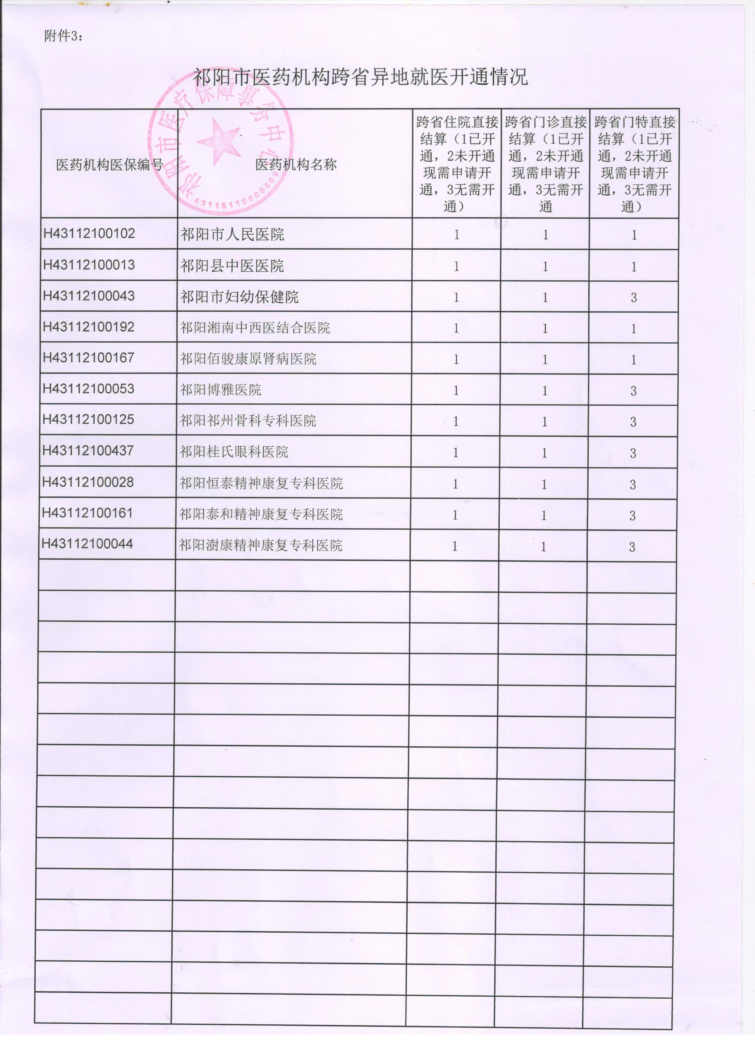 关于祁阳市医药机构跨省异地就医开通情况的公示