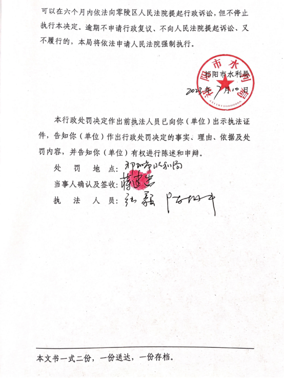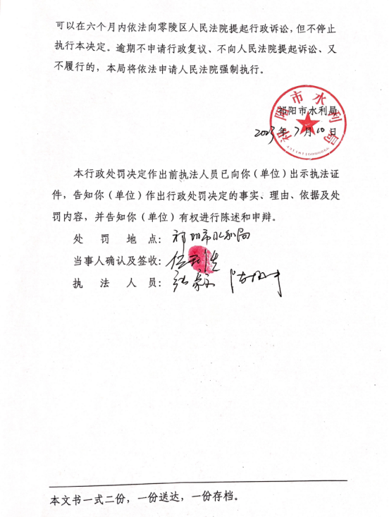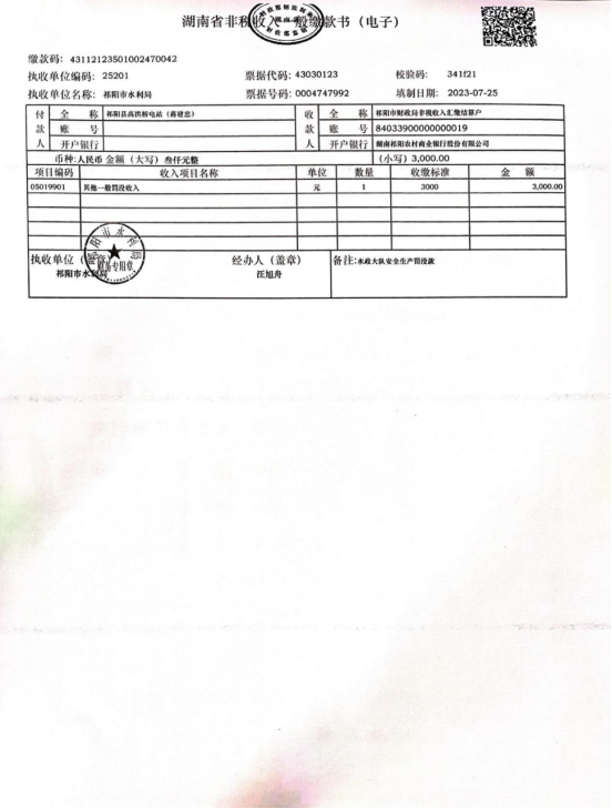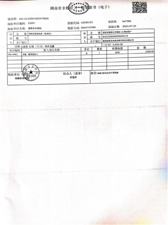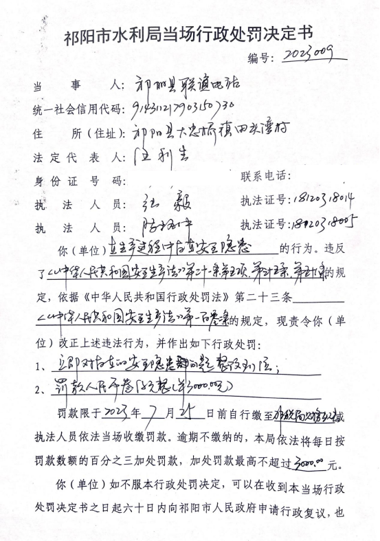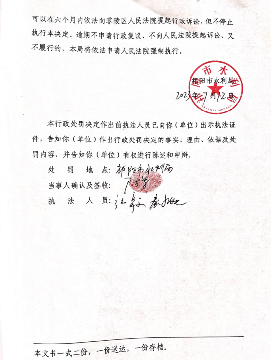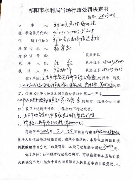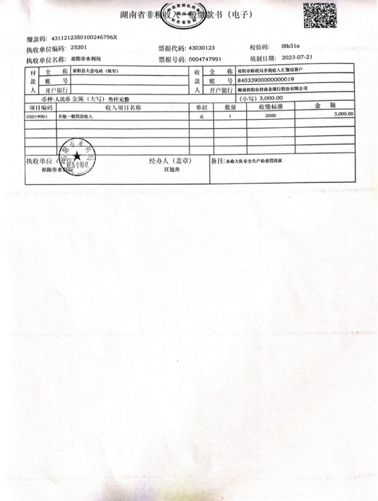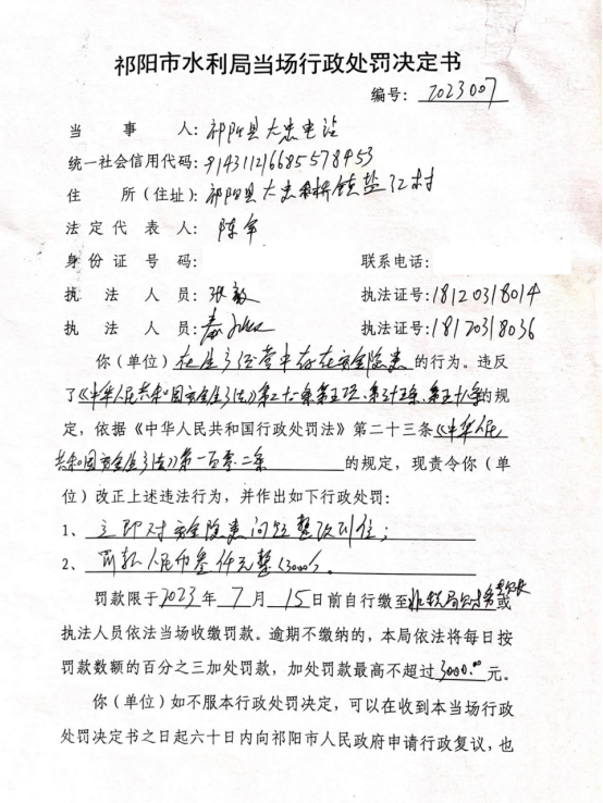 祁阳市水利局2023年7月安全生产监督检查案件的公示