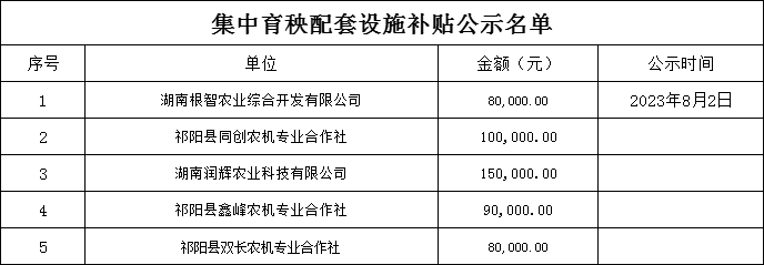 经祁阳市农业农村局党组会议研究决定,为加快推进我市集中育秧设施建设,大力发展粮食生产,拟对集中育秧重点农业企业、专业合作社、家庭农场、种粮大户给予资金扶持,现予以公示!