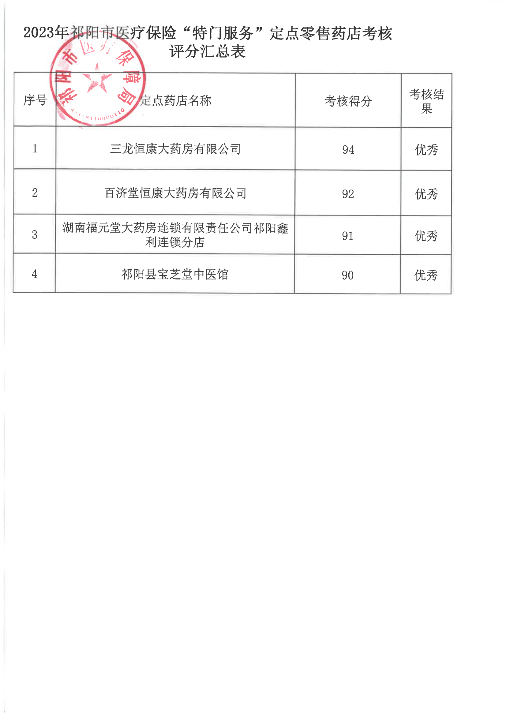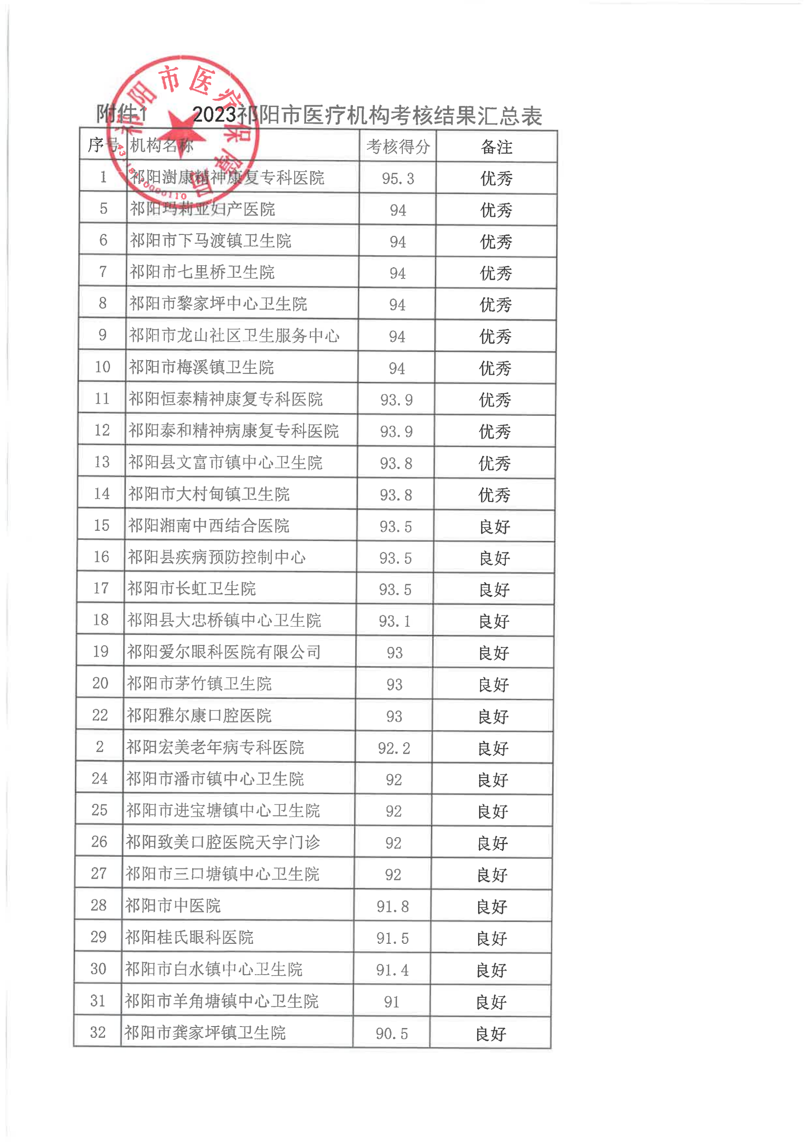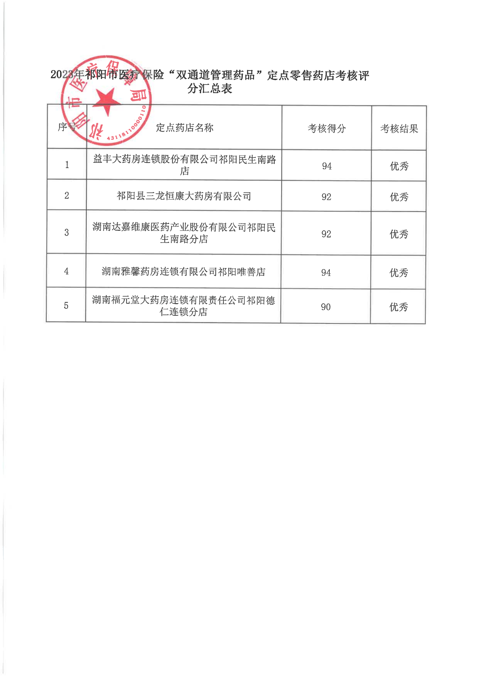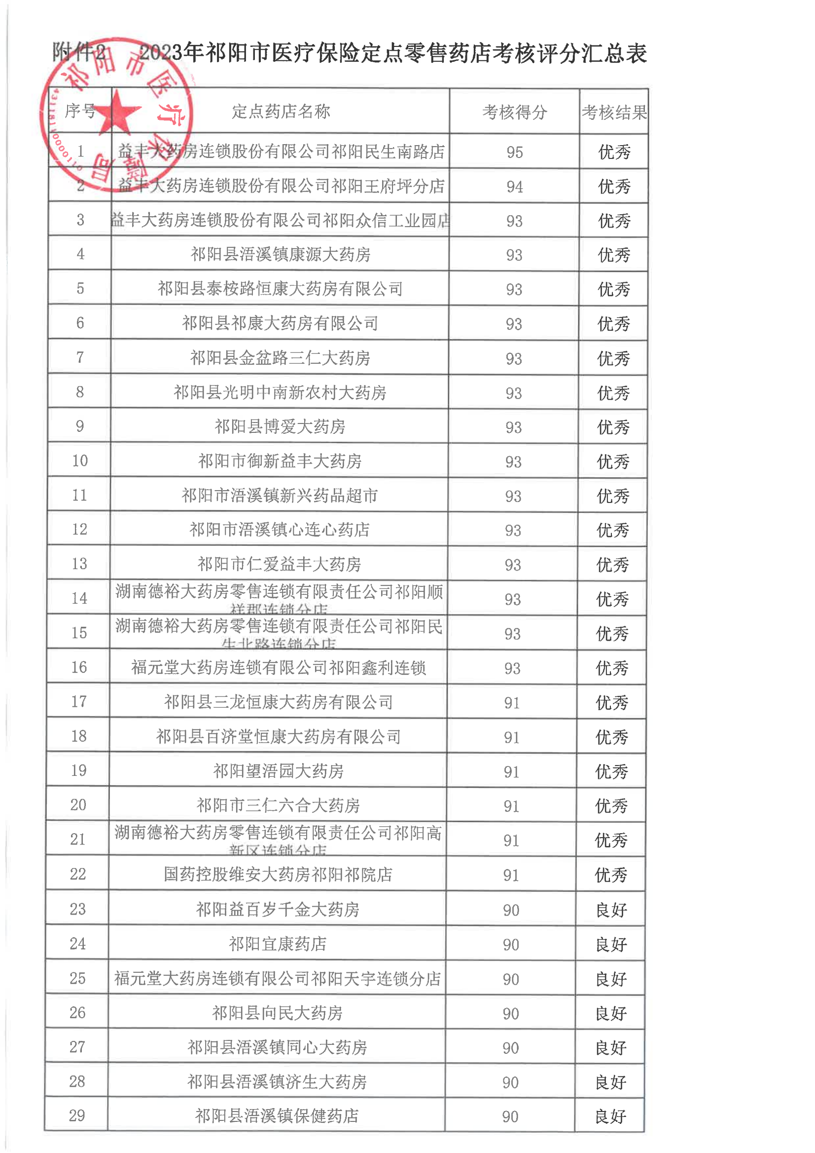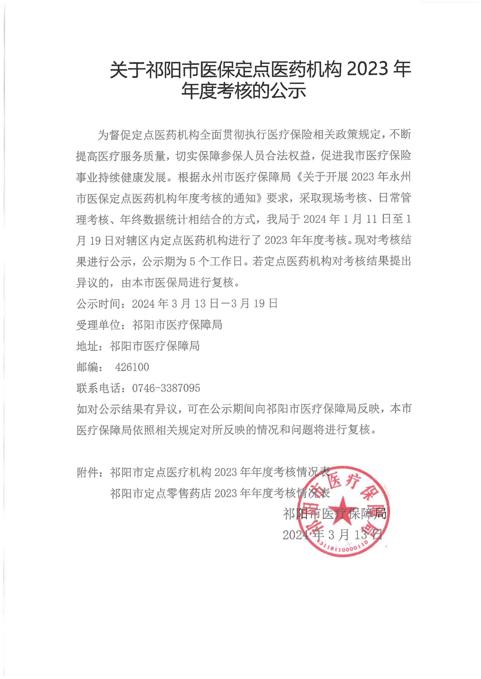 关于祁阳市医保定点医药机构2023年年度考核的公示