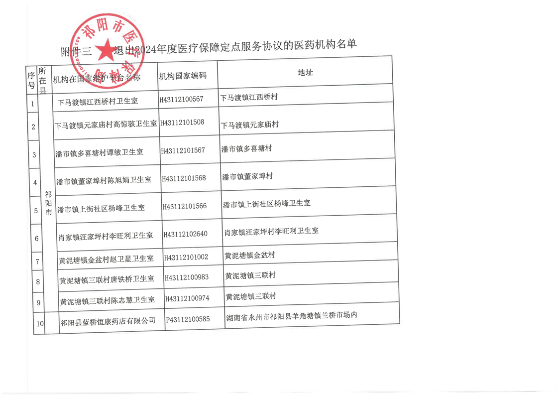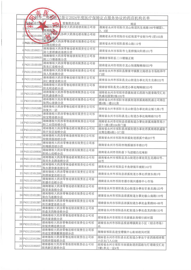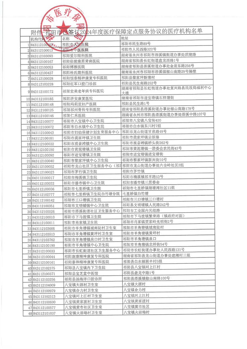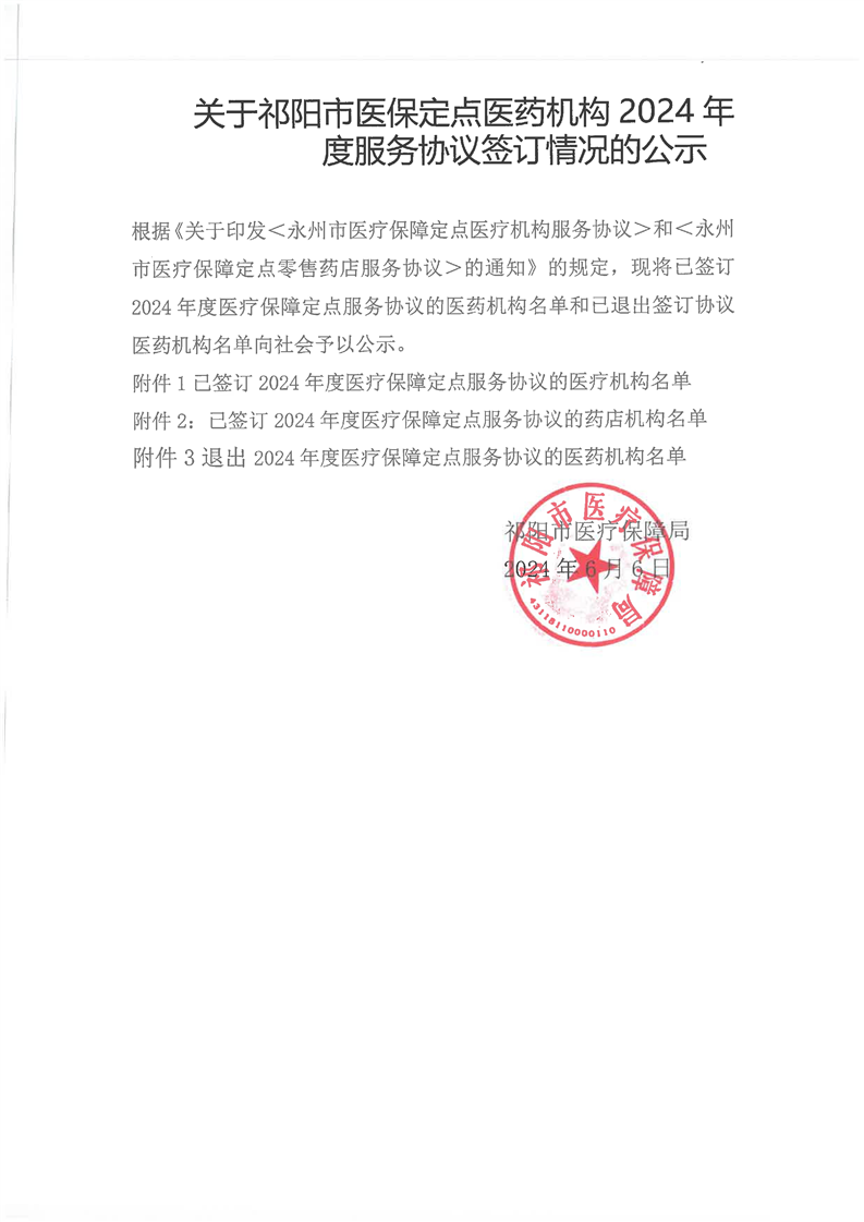 关于祁阳市医保定点医药机构2024年度服务协议签订情况的公示