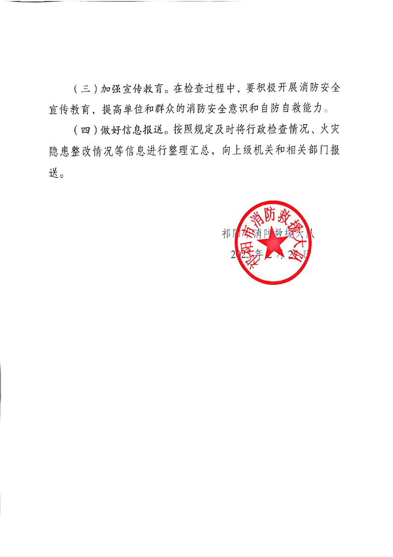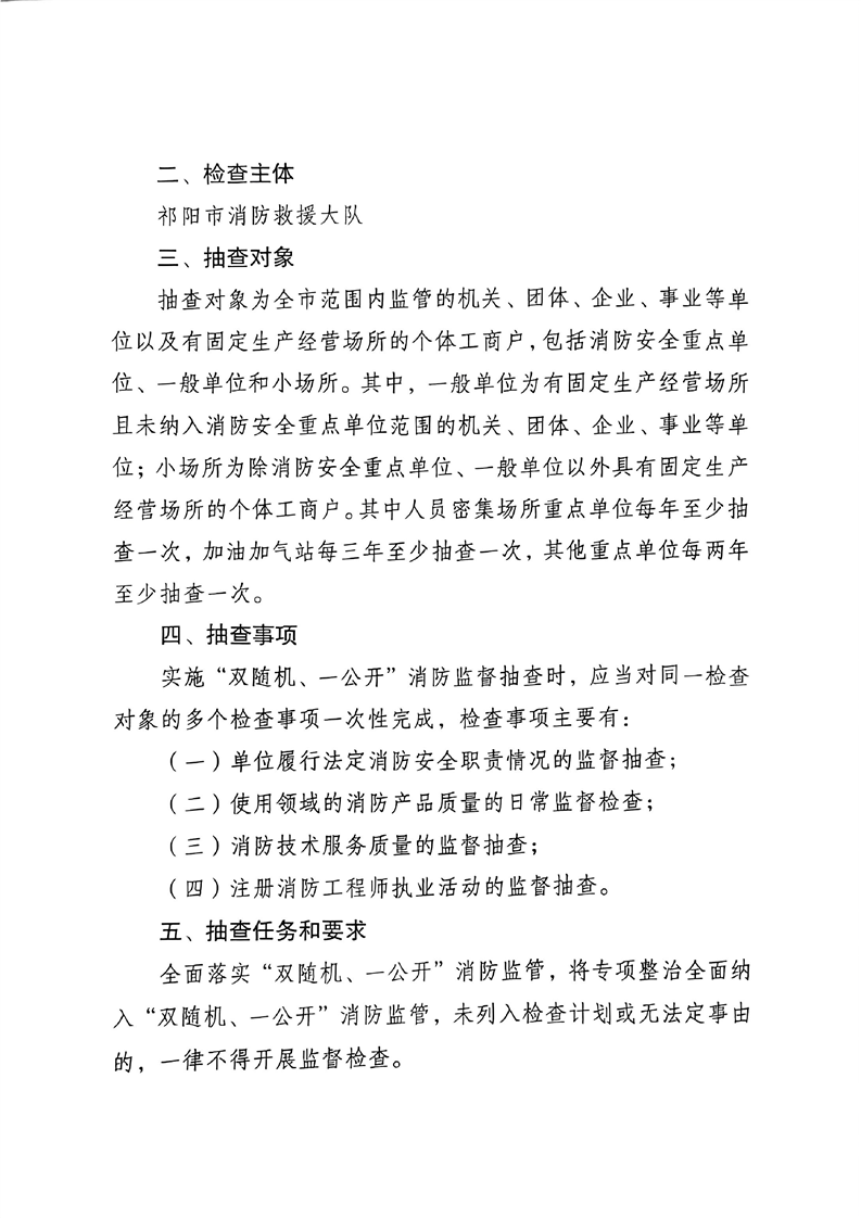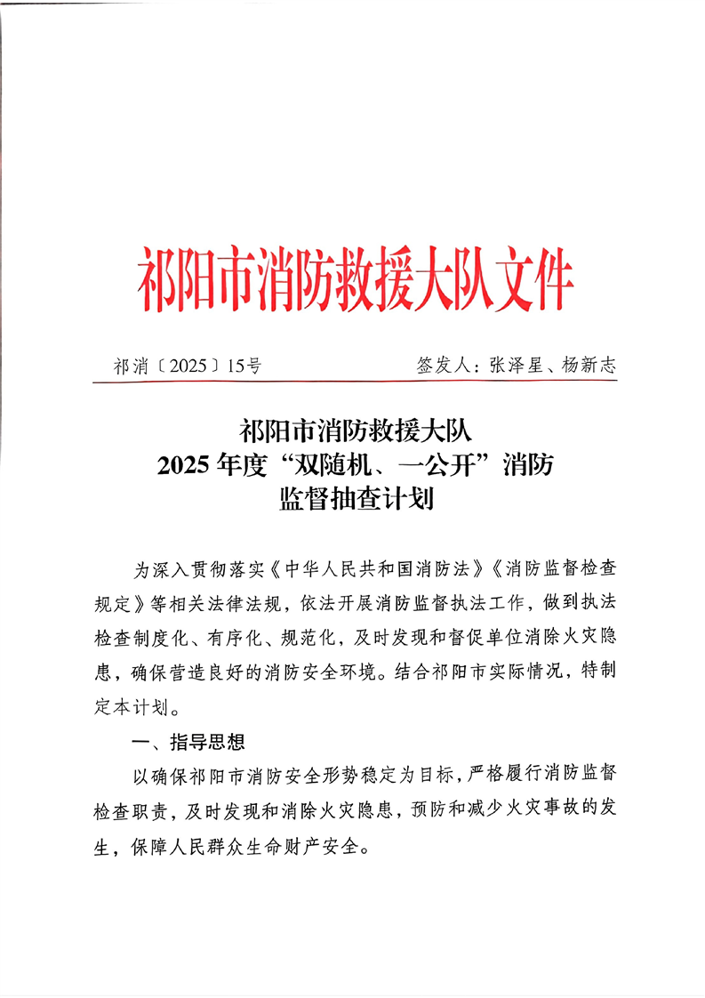 祁阳市消防救援大队2025年度“双随机、一公开”消防监督抽查计划