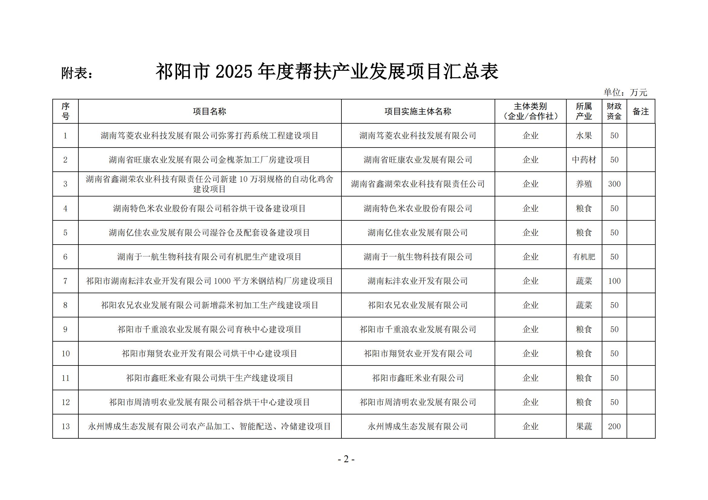 附件:祁阳市2025年度帮扶产业发展项目汇总表