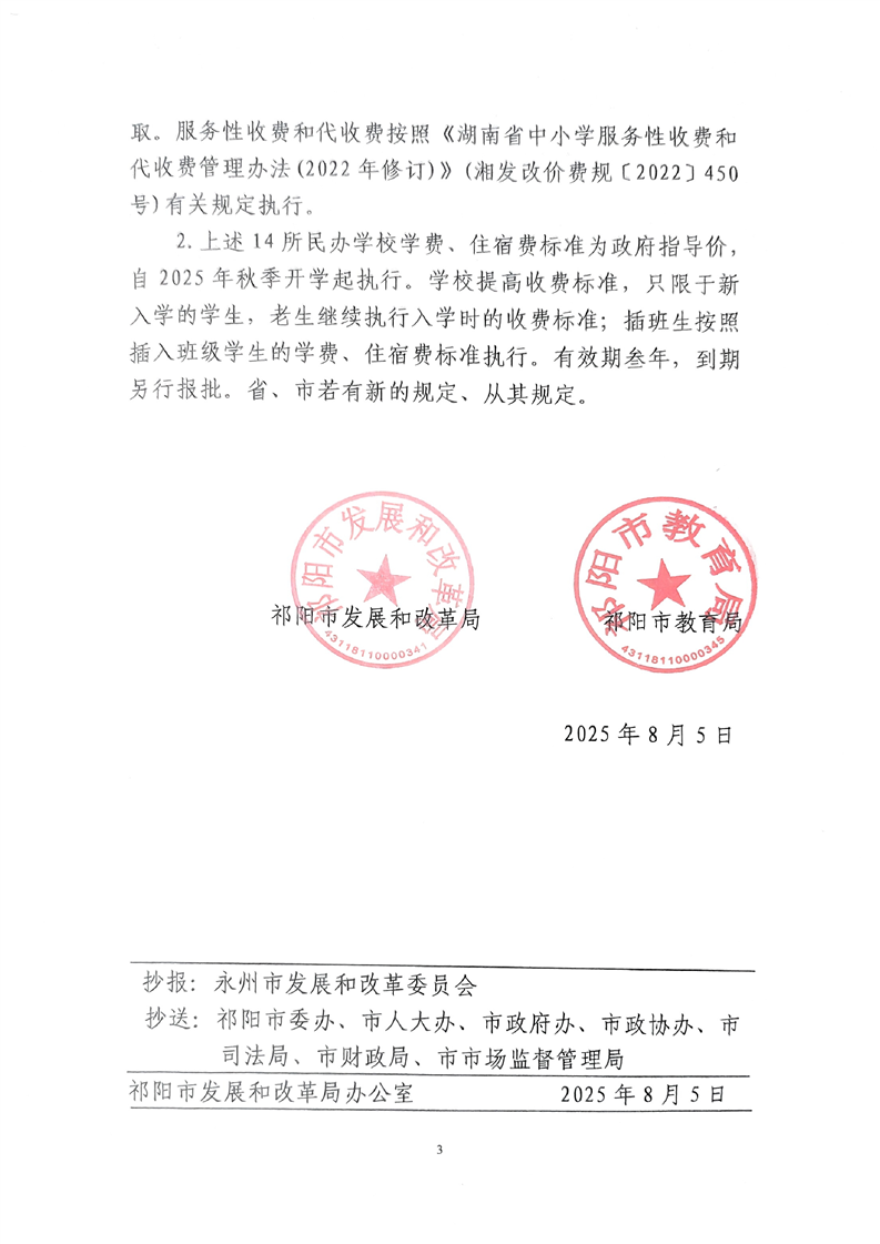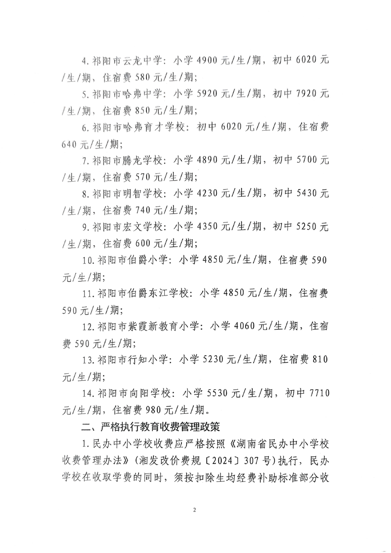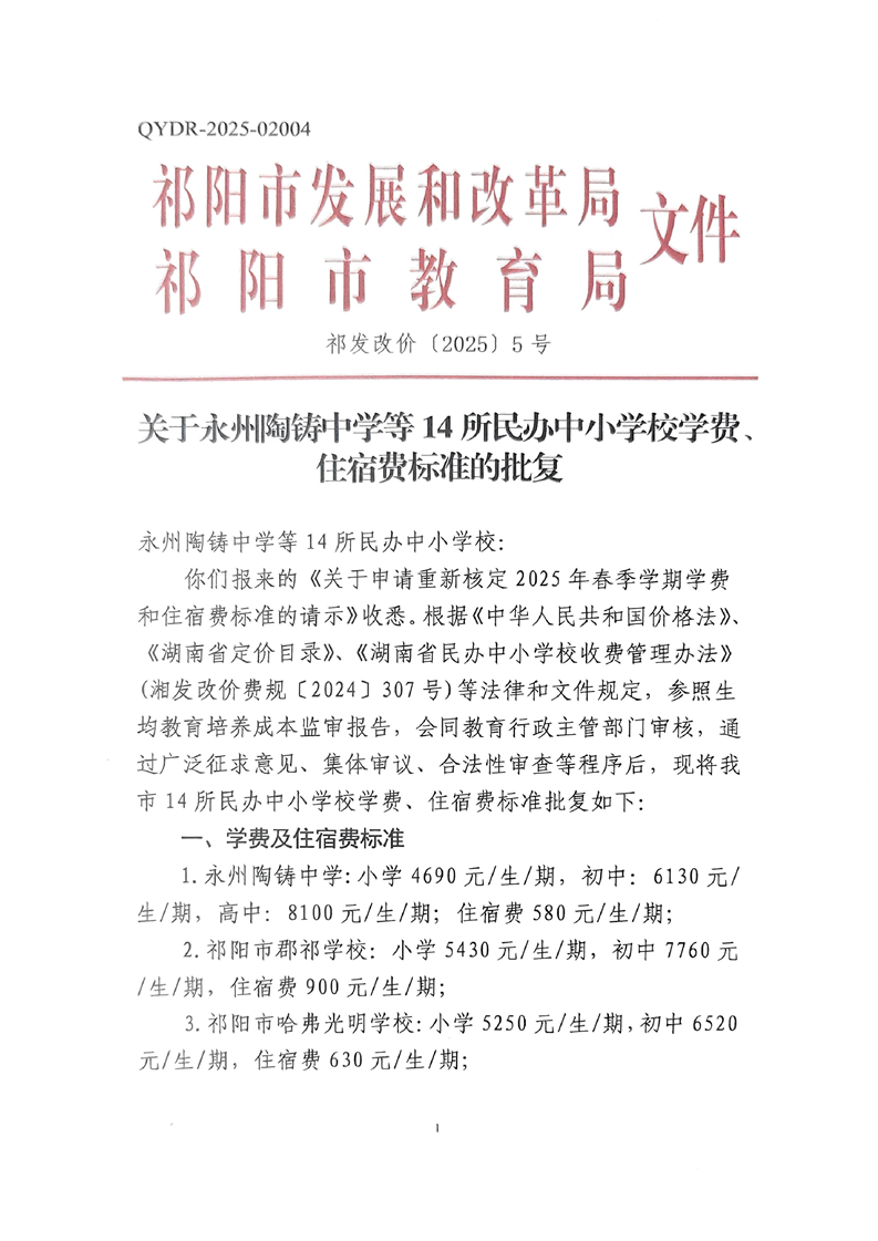 关于永州陶铸中学等14所民办中小学校学费、住宿费标准的批复