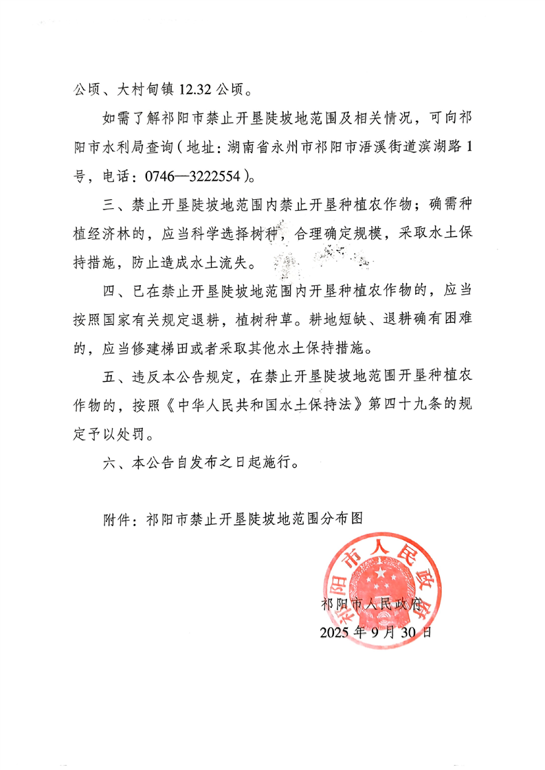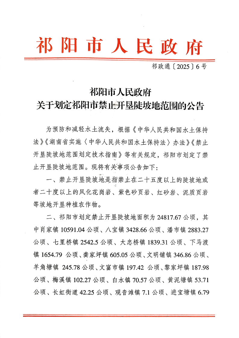 祁阳市人民政府关于划定祁阳市禁止开垦陡坡地范围的公告