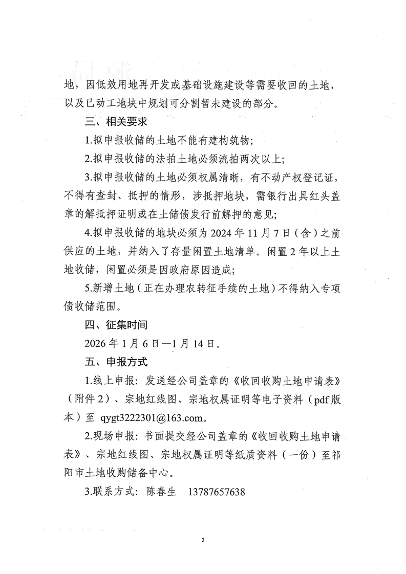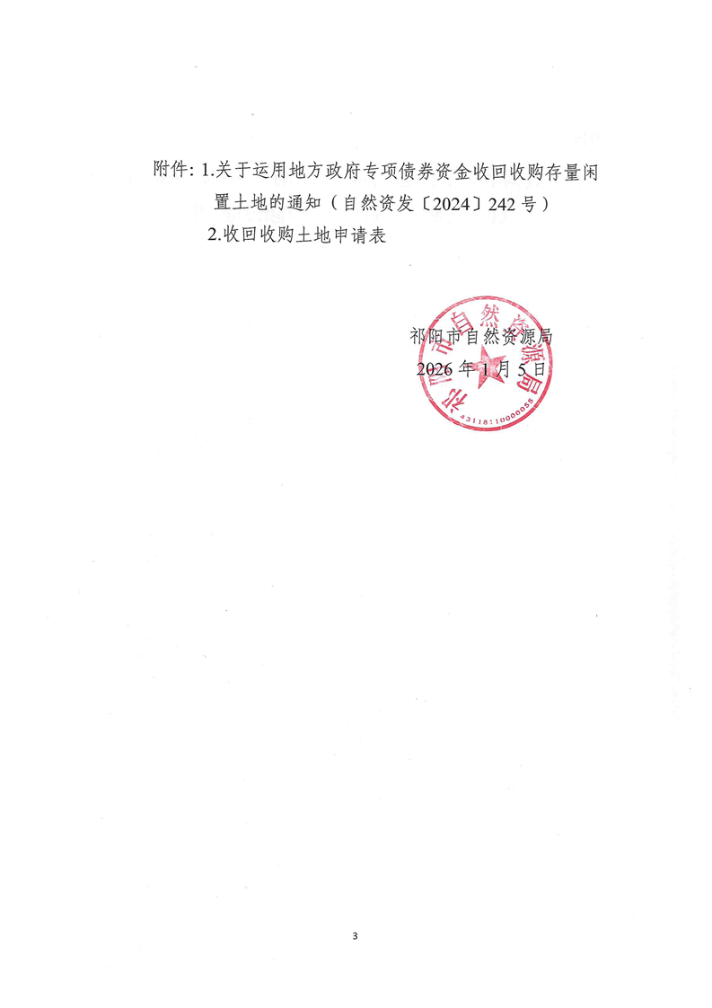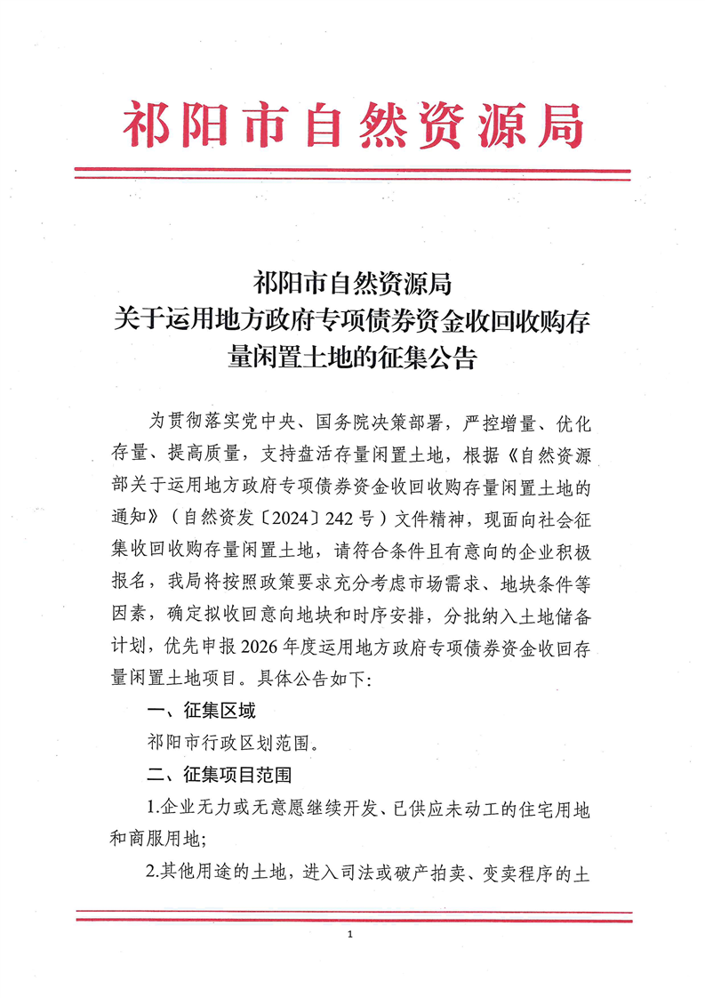 祁阳市自然资源局关于运用地方政府专项债券资金收回收购存量闲置土地的征集公告