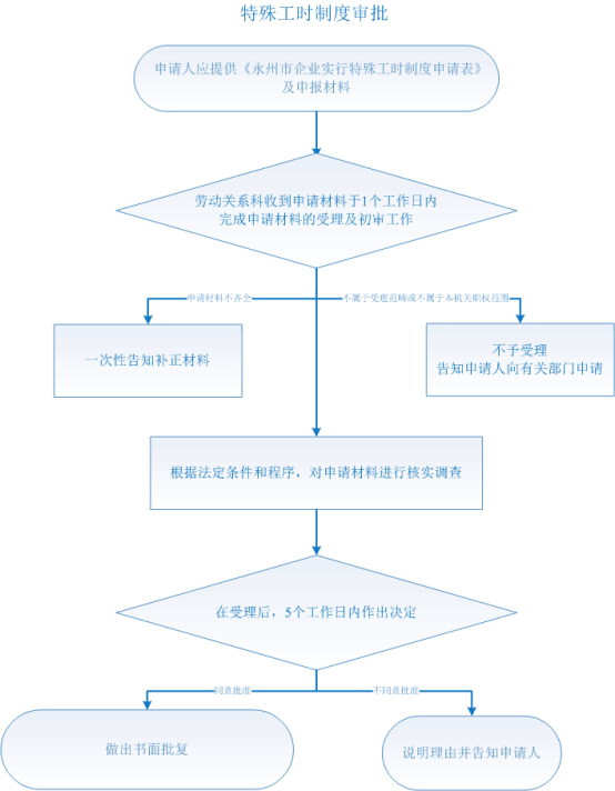 三、办理对象:祁阳市行政区域内确因生产经营特点或者工作性质不能实行"劳动者每日工作不超过8小时、每周工作不超过40小时"的用人单位,按属地管辖原则,经申报、批准可以实行综合计算工时工作制或者不定时工作制。