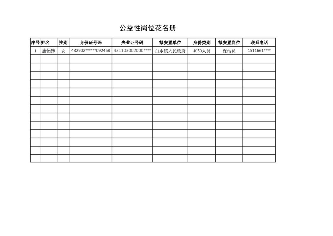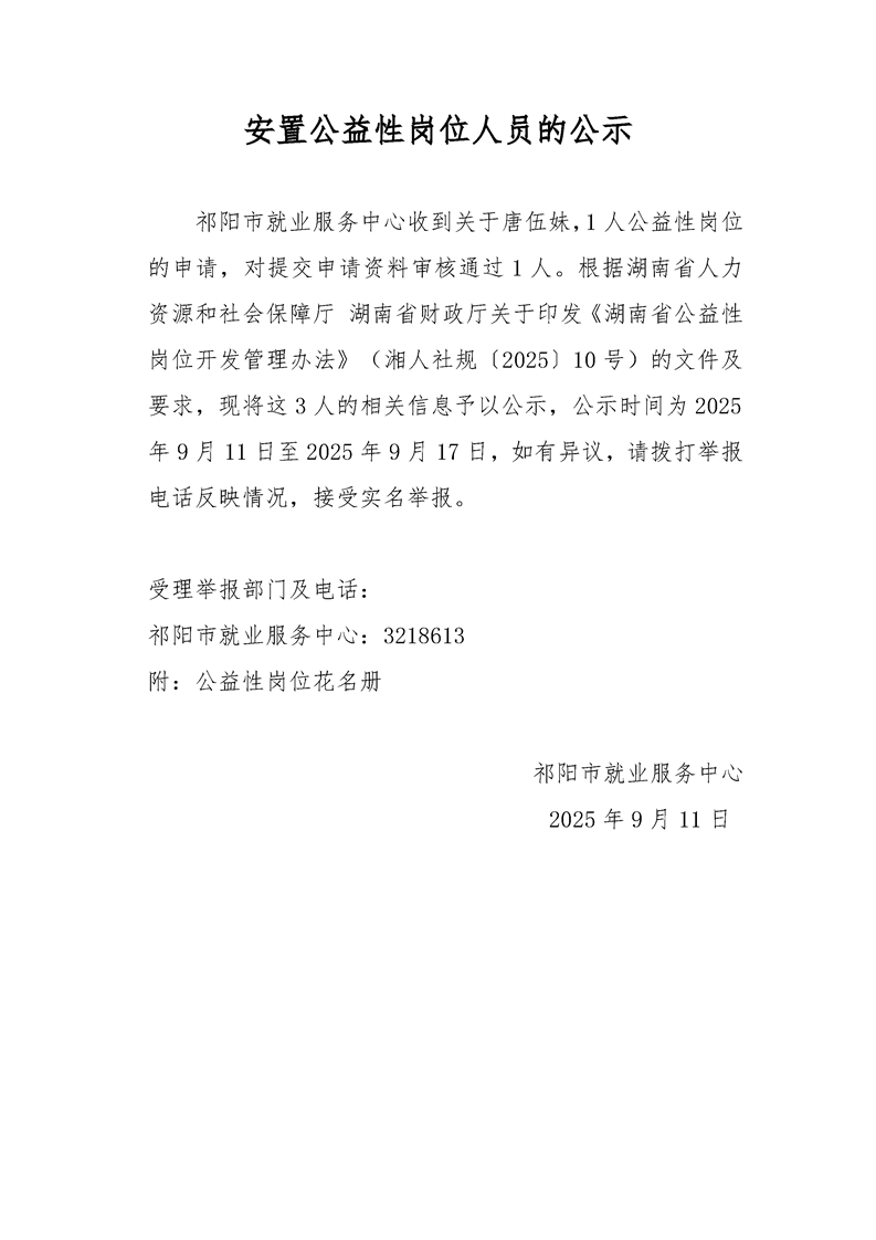 安置公益性岗位人员的公示