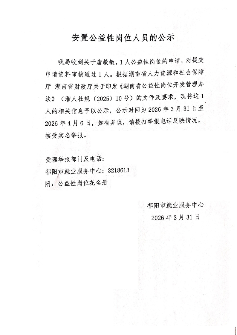 安置公益性岗位人员的公示