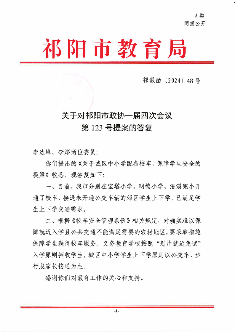 祁教函〔2024〕48号 关于对祁阳市政协一届四次会议第123号提案的答复