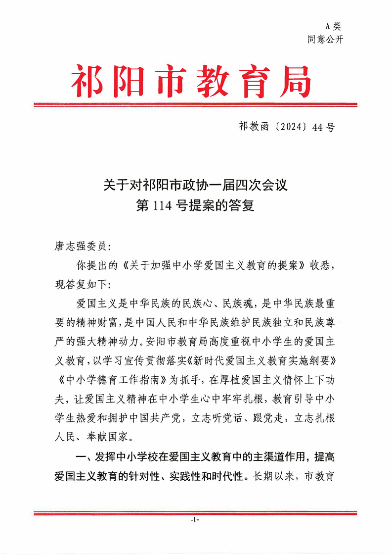 祁教函〔2024〕44号 关于对祁阳市政协一届四次会议第114号提案的答复
