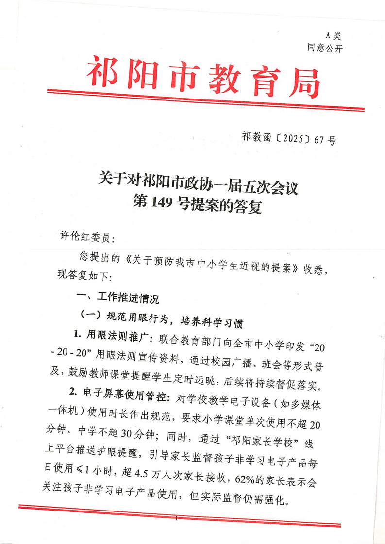 祁教函[2025]67号 关于对祁阳市政协一届五次会议第149号提案的答复