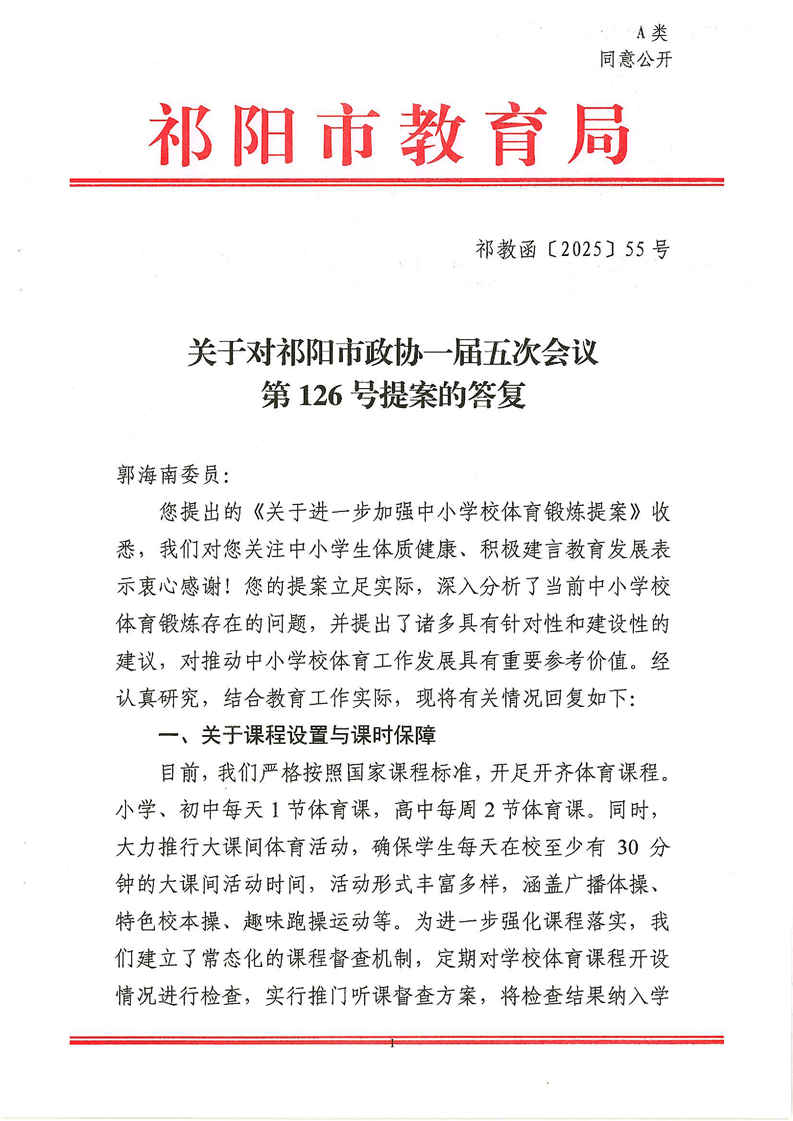 祁教函[2025]55号 关于对祁阳市政协一届五次会议第126号提案的答复