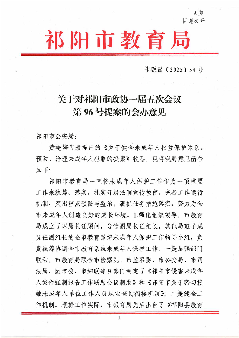 祁教函[2025]54号 关于对祁阳市政协一届五次会议第96号提案的会办意见