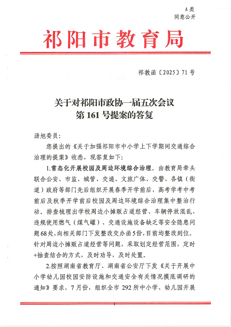 祁教函[2025]71号 关于对祁阳市政协一届五次会议第161号提案的答复