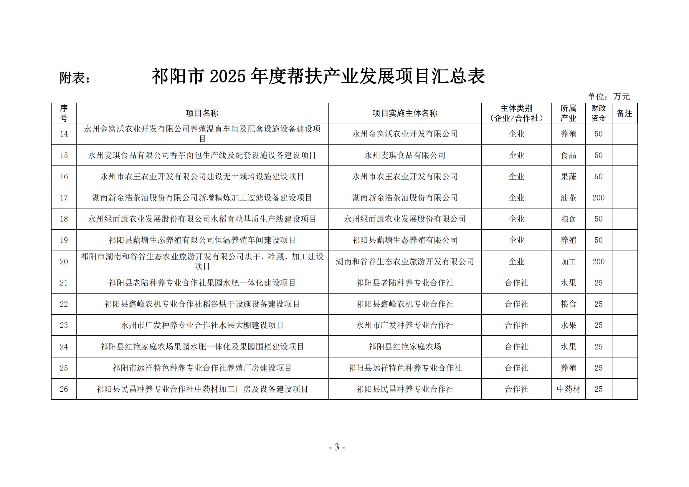 附件:祁阳市2025年度帮扶产业发展项目汇总表