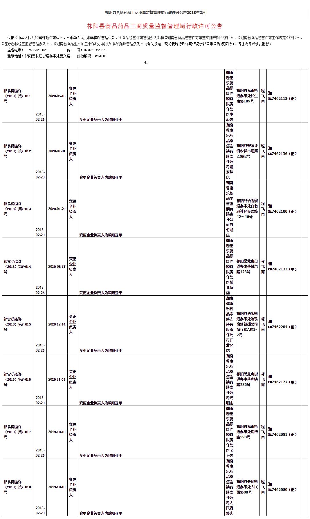 祁阳县食品药品工商质量监督管理局行政许可公告2018年2月 (七)