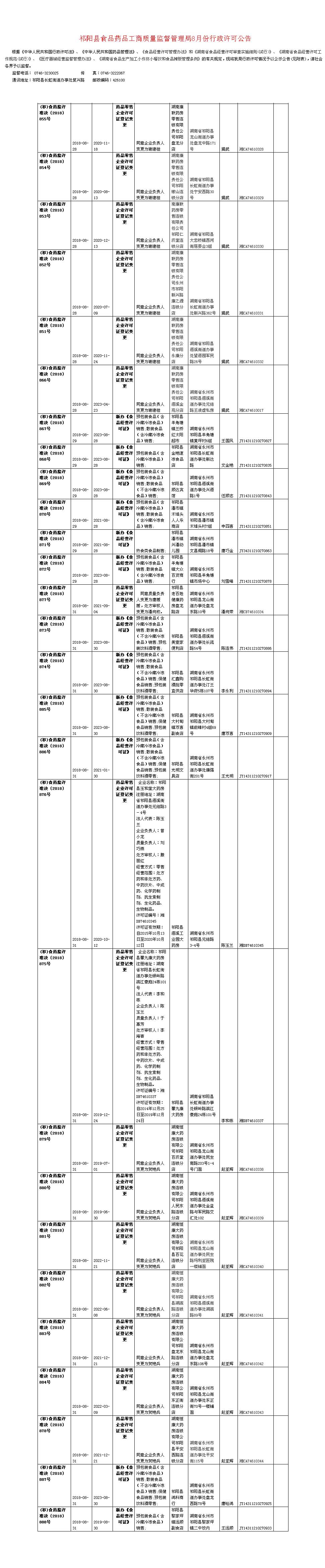 祁阳县食品药品工商质量监督管理局8月份行政许可公告 九