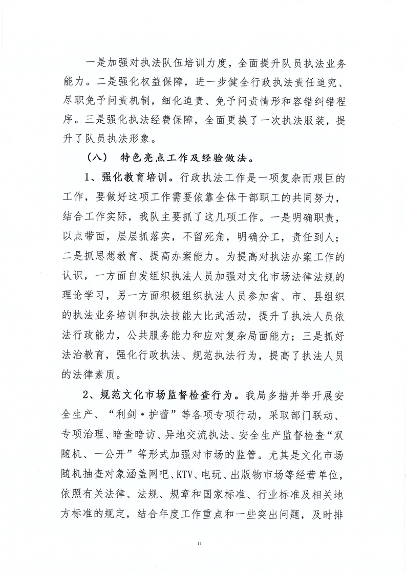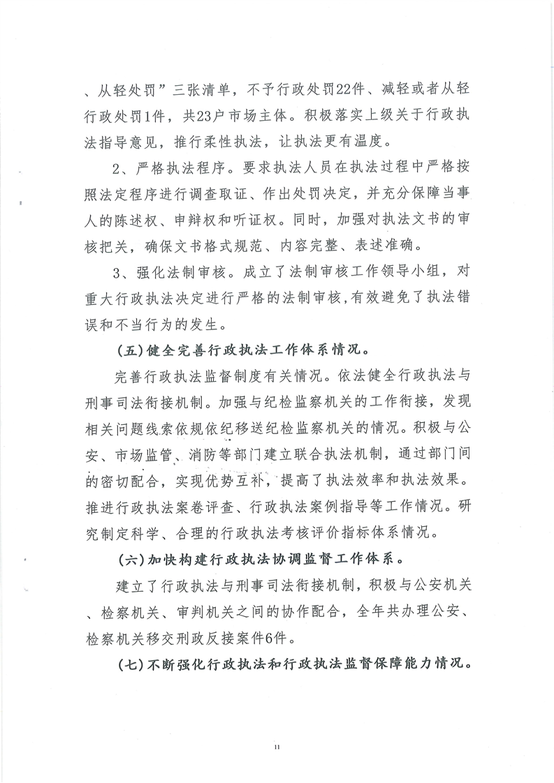 行政执法工作报告