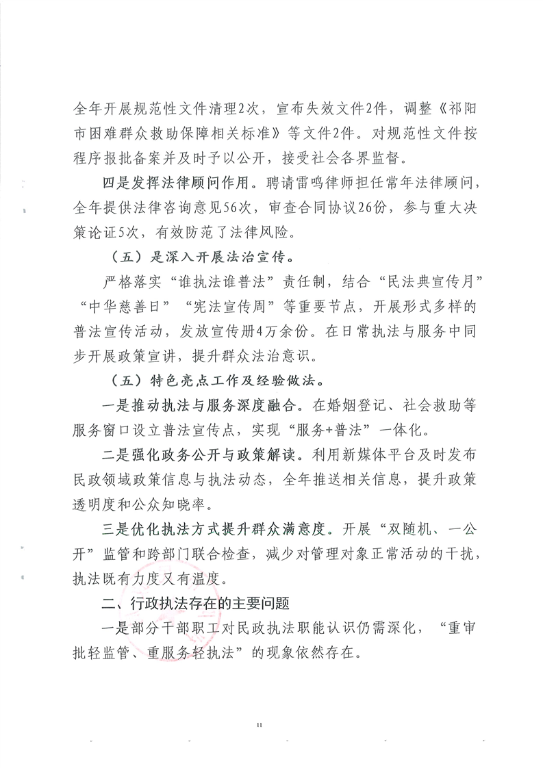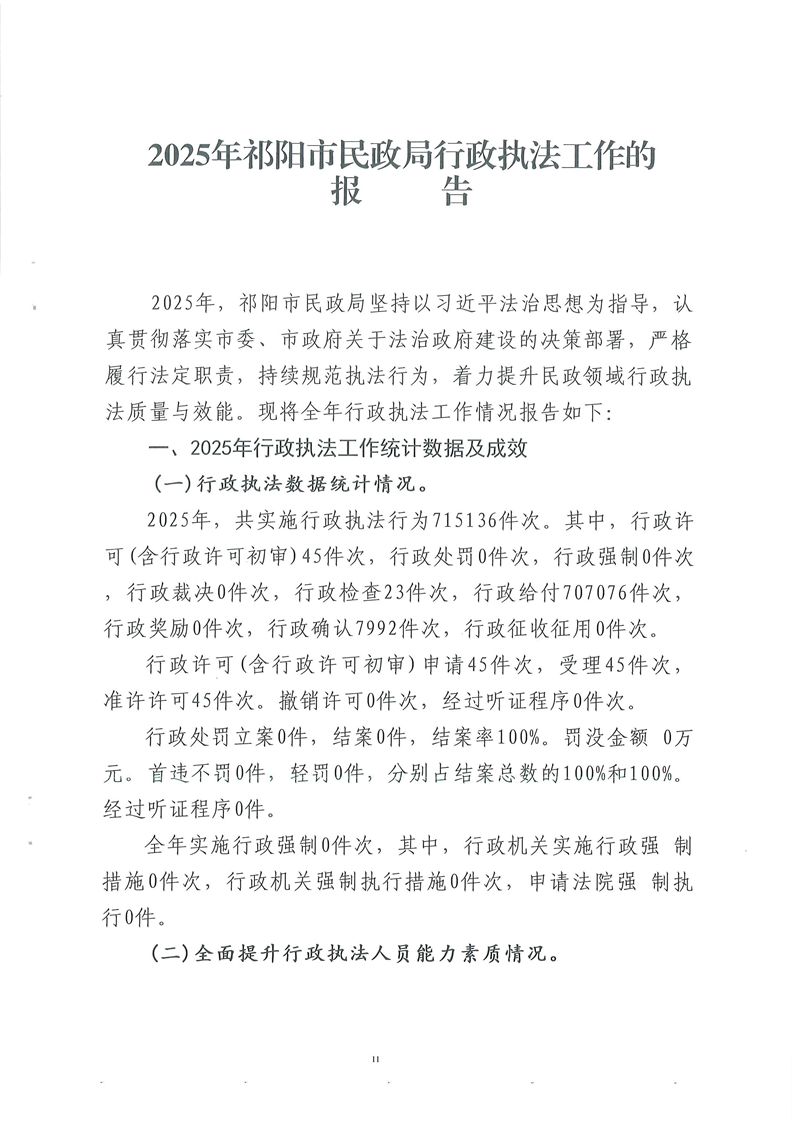 祁阳市民政局2025年行政执法工作报告