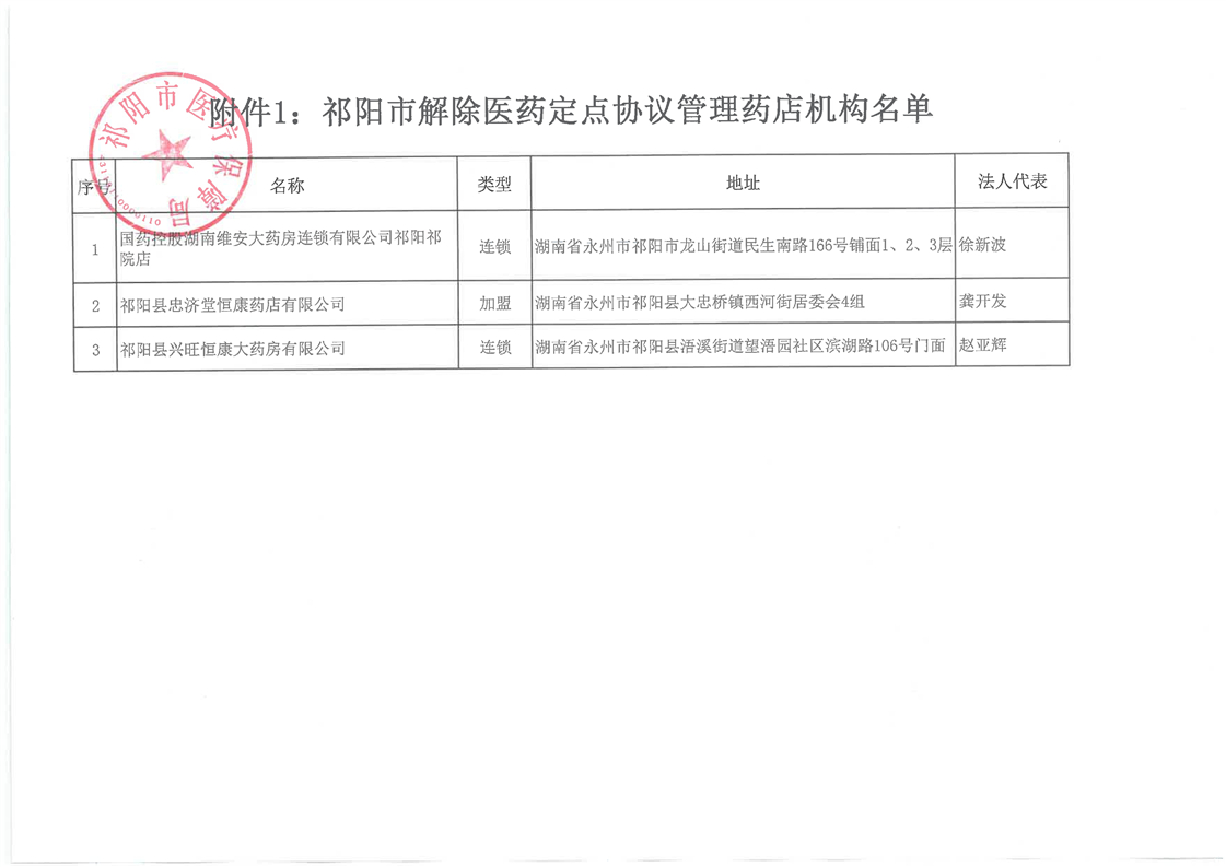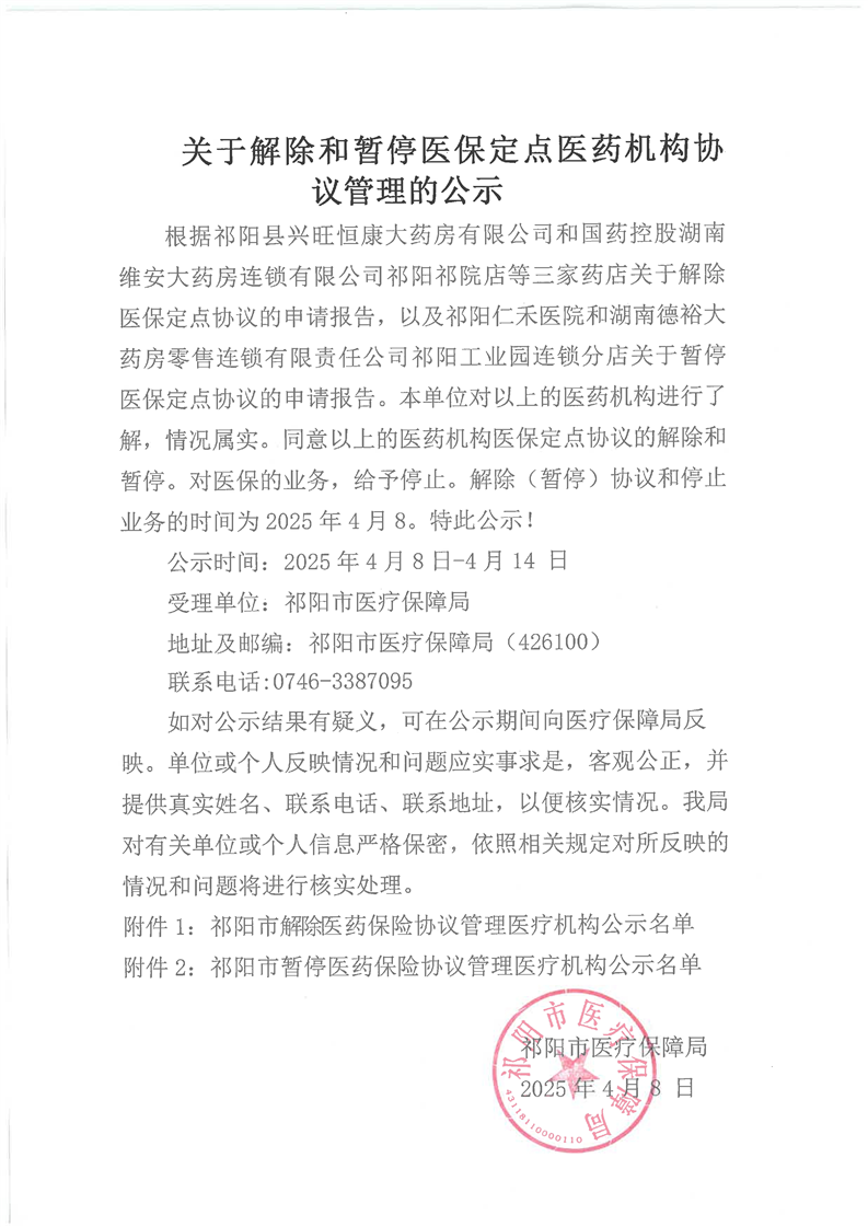 关于解除和暂停医保定点医药机构协议管理的公示